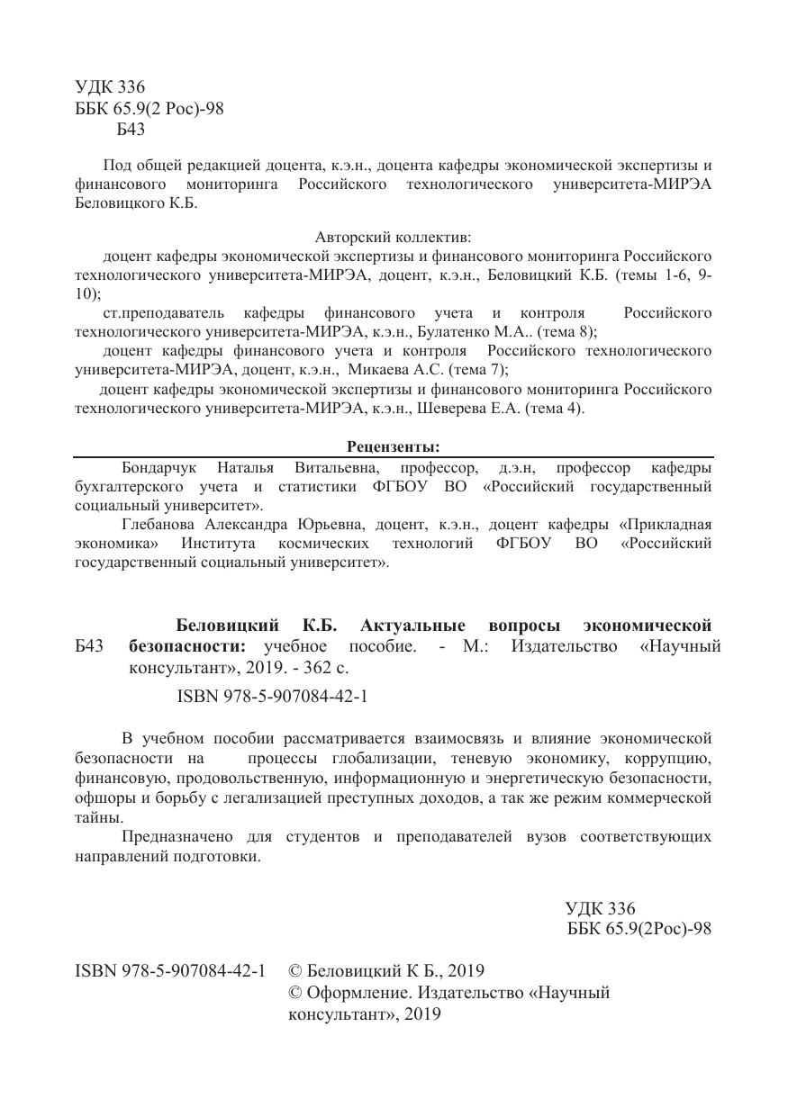 В учебном пособии рассматривается взаимосвязь и влияние экономической безопасности на процессы глобализации, теневую экономику, коррупцию, финансовую, продовольственную, информационную и энергетическую безопасности, офшоры и борьбу с легализацией преступных доходов, а так же режим коммерческой тайны. Предназначено для студентов и преподавателей вузов соответствующих направлений подготовки