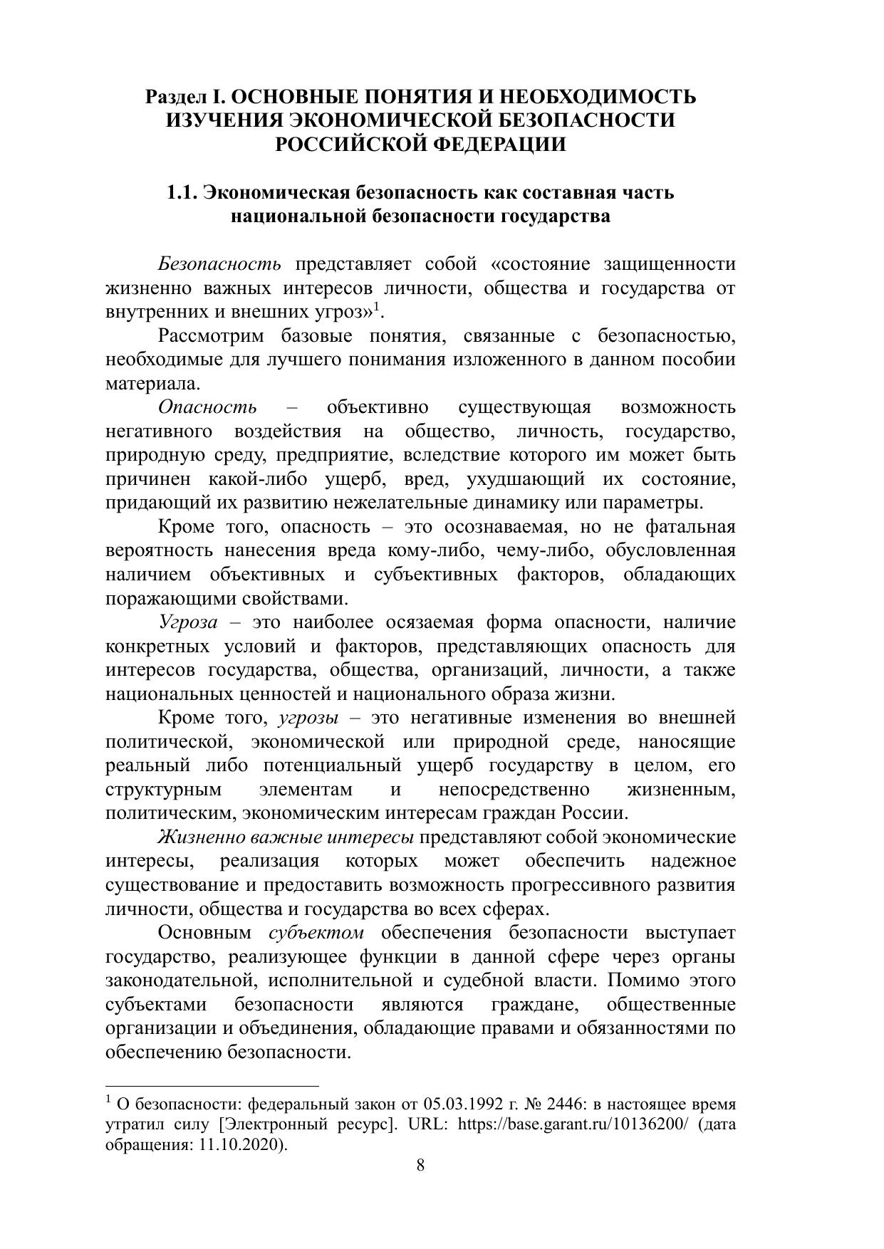 Экономическая безопасность Российской Федерации