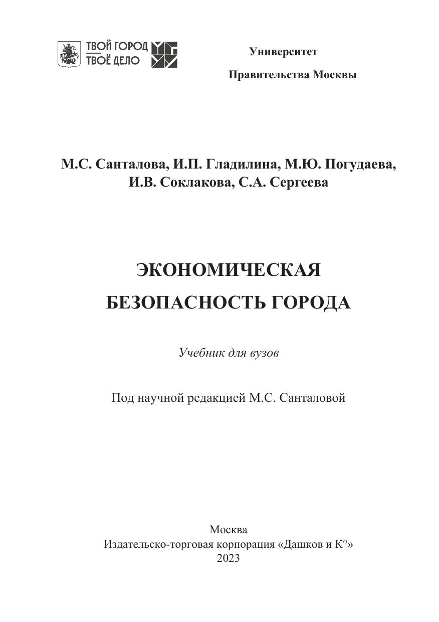 В учебнике представлен учебный материал по экономической безопасности города, направленный на формирование у студентов знаний, умений, навыков. т.е. компетенций в области теоретических основ экономической безопасности города, экономической безопасности города как системы, инструментов управления эко-номической безопасностью города и методов ее исследования.