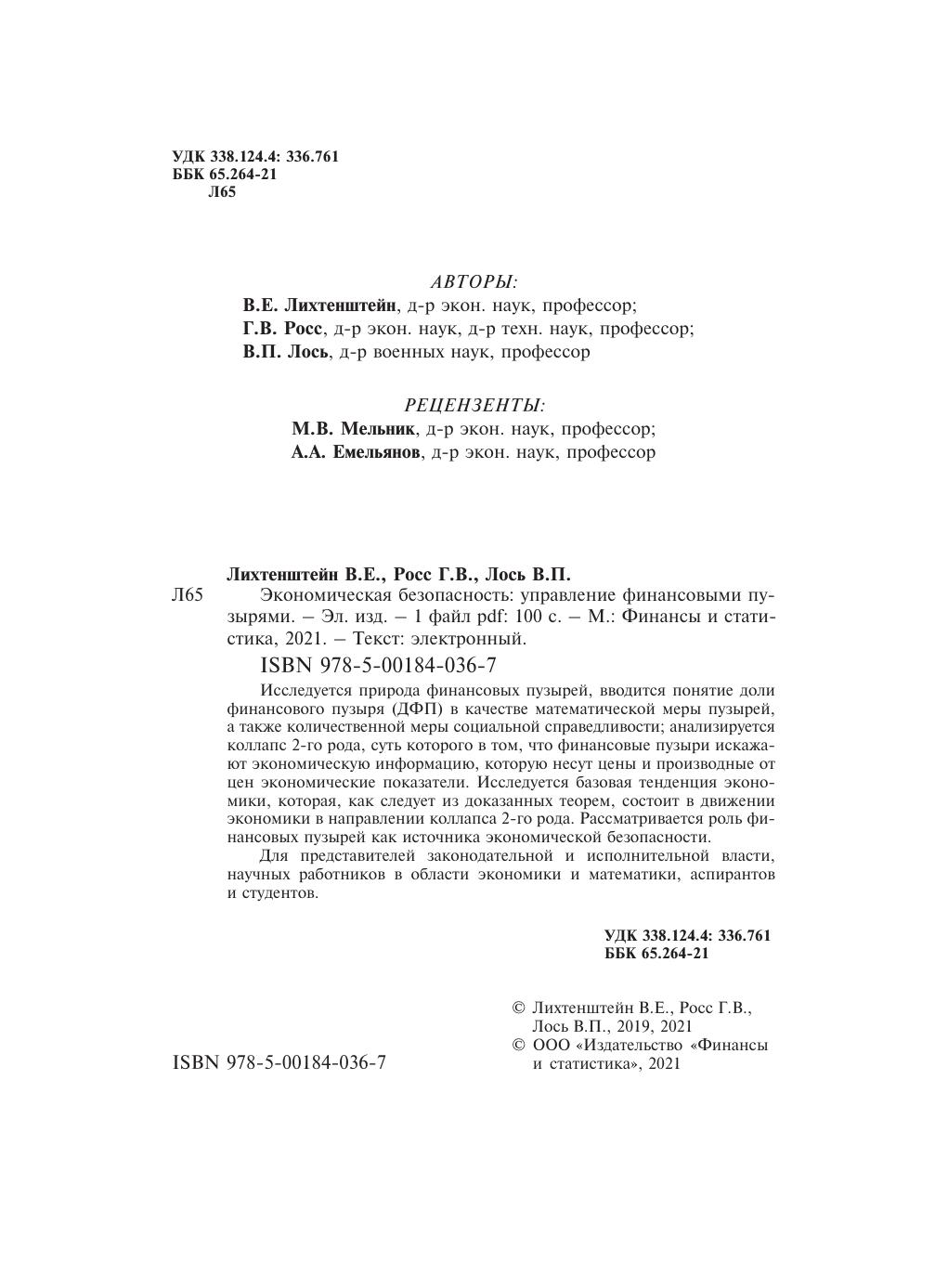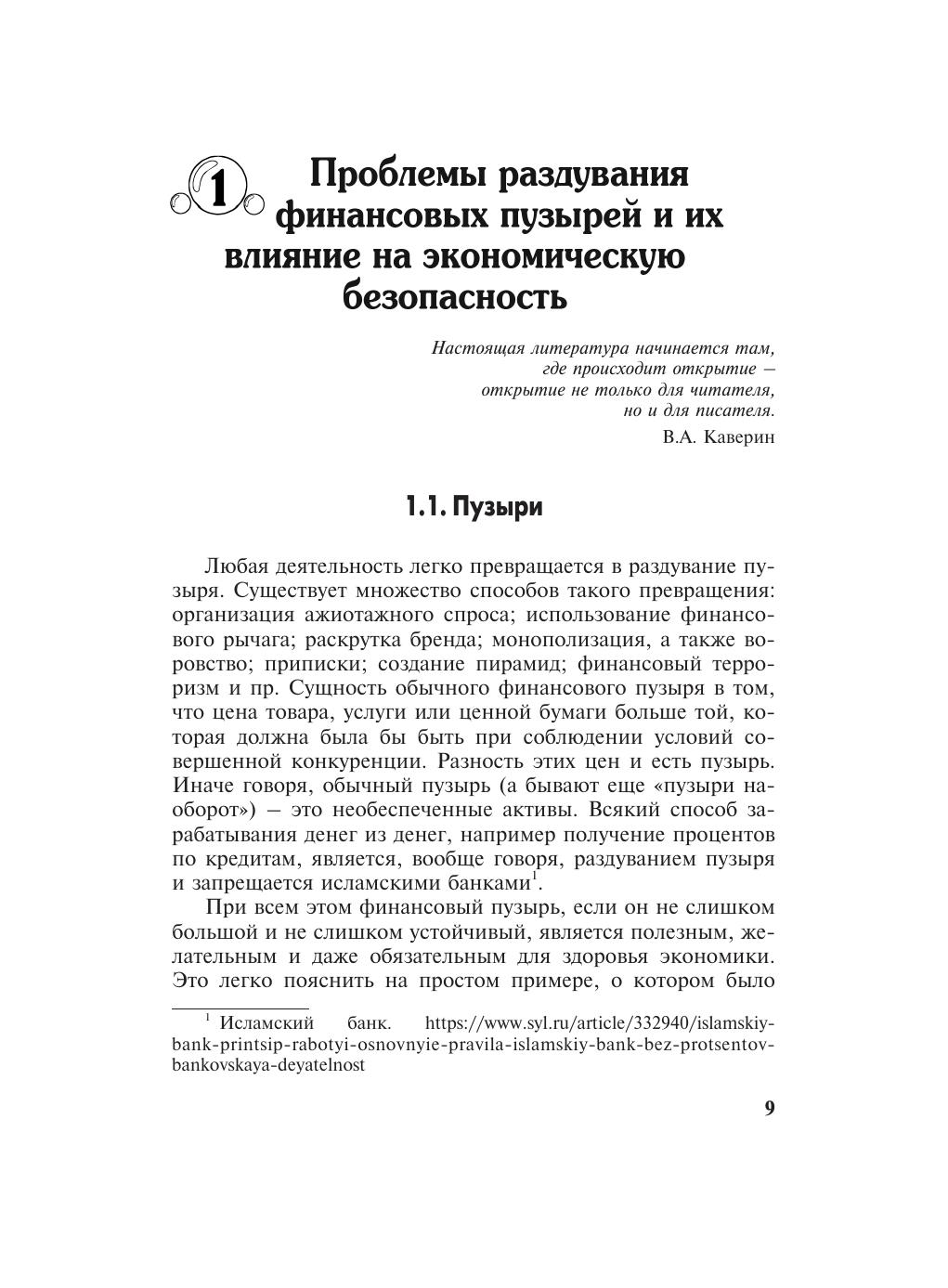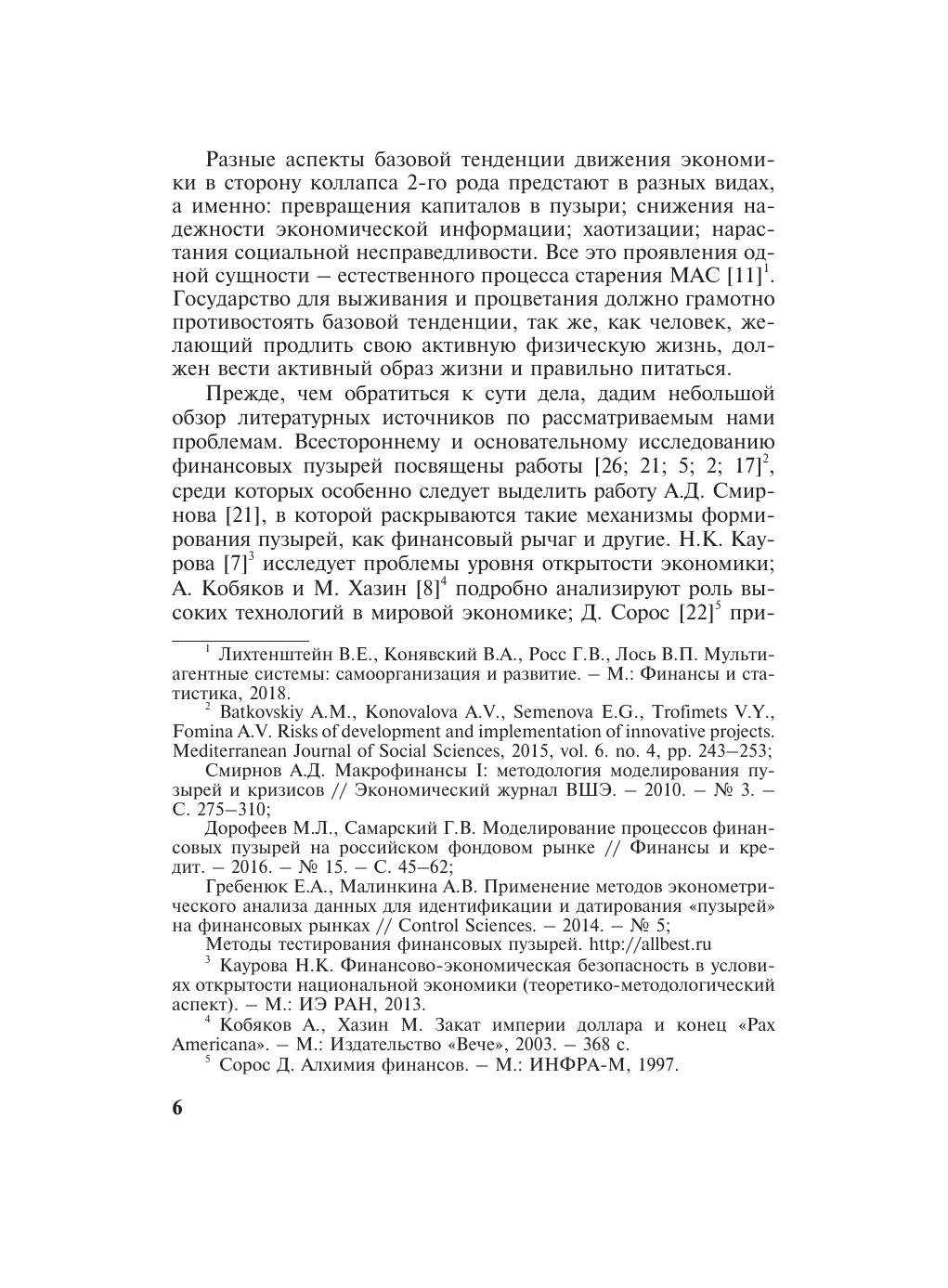 Исследуется природа финансовых пузырей, вводится понятие доли финансового пузыря (ДФП) в качестве математической меры пузырей, а также количественной меры социальной справедливости; анализируется коллапс 2-го рода, суть которого в том, что финансовые пузыри искажают экономическую информацию, которую несут цены и производные от цен экономические показатели. Исследуется базовая тенденция экономики, которая, как следует из доказанных теорем, состоит в движении экономики в направлении коллапса 2-го рода. Рассматривается роль финансовых пузырей как источника экономической безопасности.