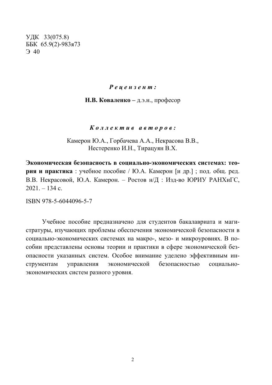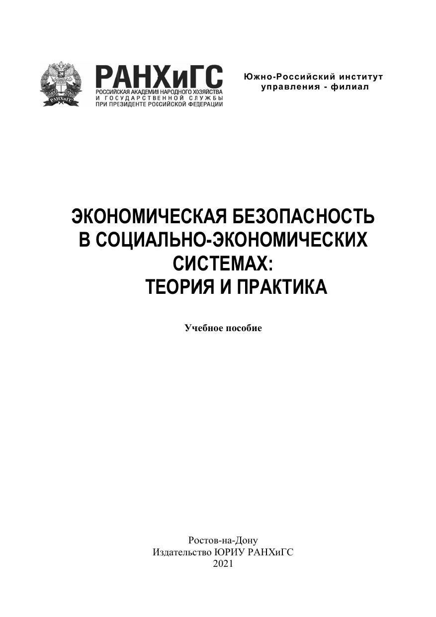 Экономическая безопасность в социально-экономических системах: теория и практика
