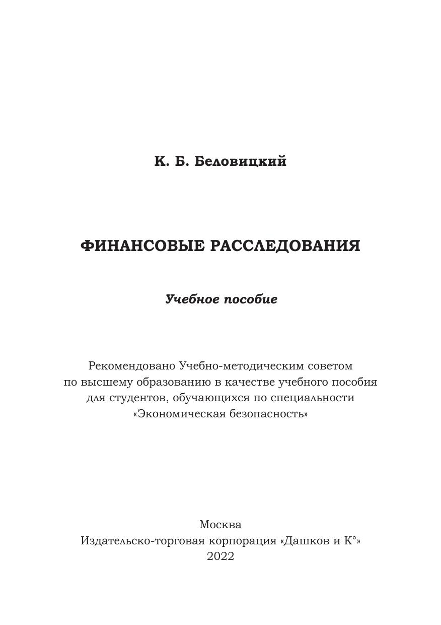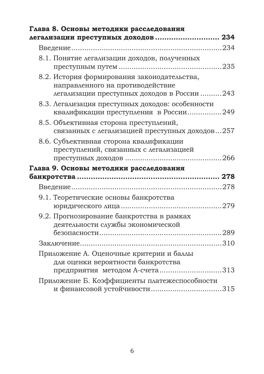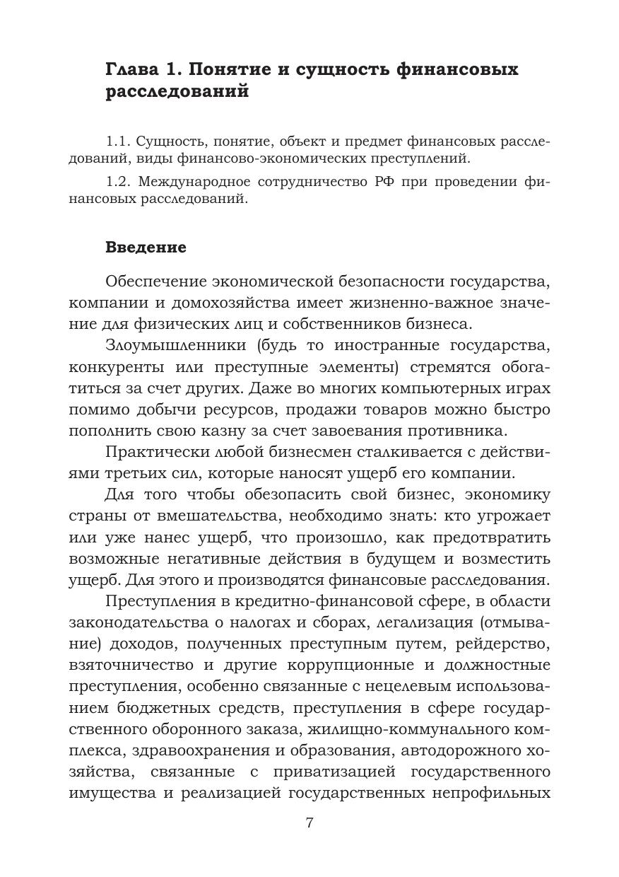 В учебном пособии рассматриваются понятие и сущность финансовых расследований, дается характеристика органов, осуществляющих финансовые расследования. Приводятся общие положения методики финансовых расследований, в частности методики расследования налоговых преступлений, мошенничества в финансовой сфере, легализации преступных доходов, банкротства. Изучаются методы установления и закрепления следов на материальных и нематериальных носителях, сущность и задачи судебно-экономической экспертизы.
