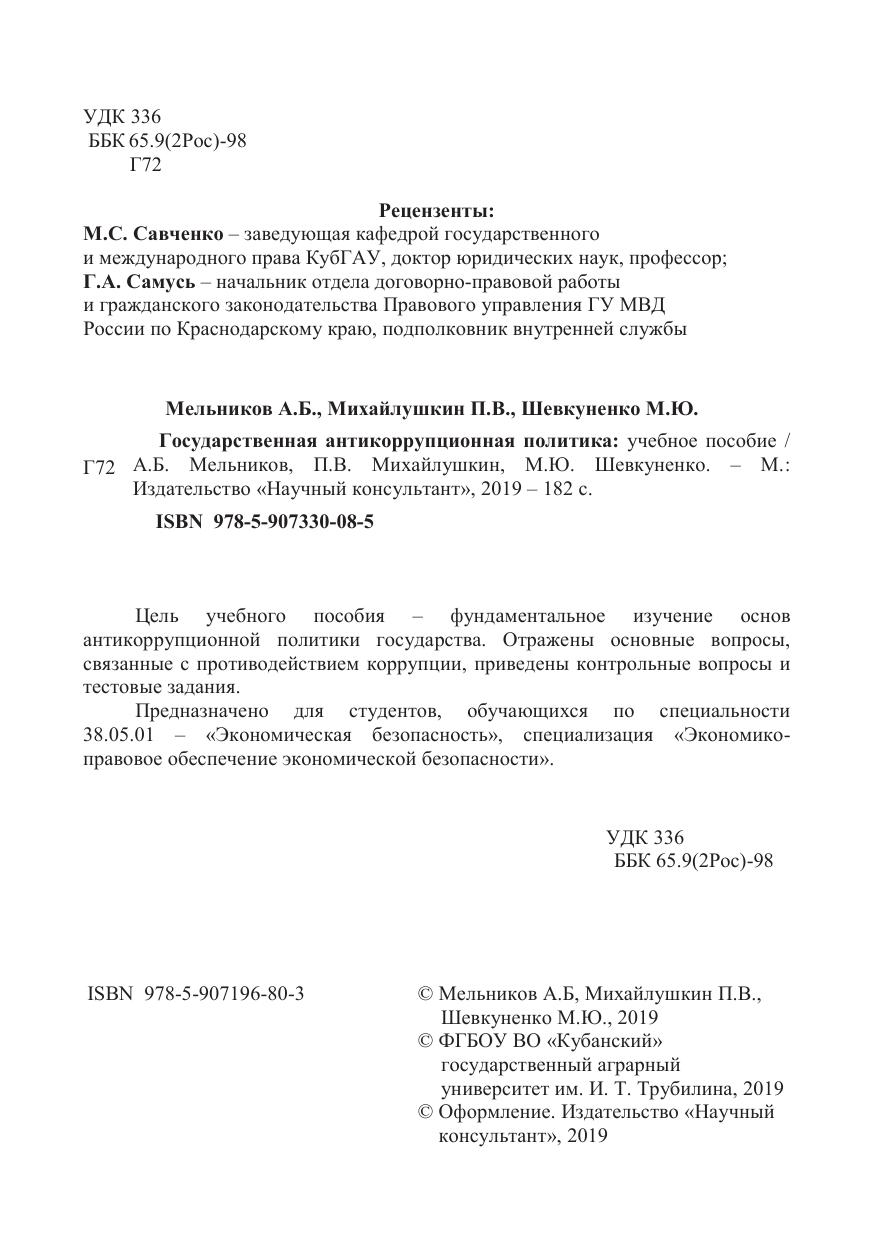 Учебное пособие. Цель учебного пособия – фундаментальное изучение основ антикоррупционной политики государства. Отражены основные вопросы, связанные с противодействием коррупции, приведены контрольные вопросы и тестовые задания.