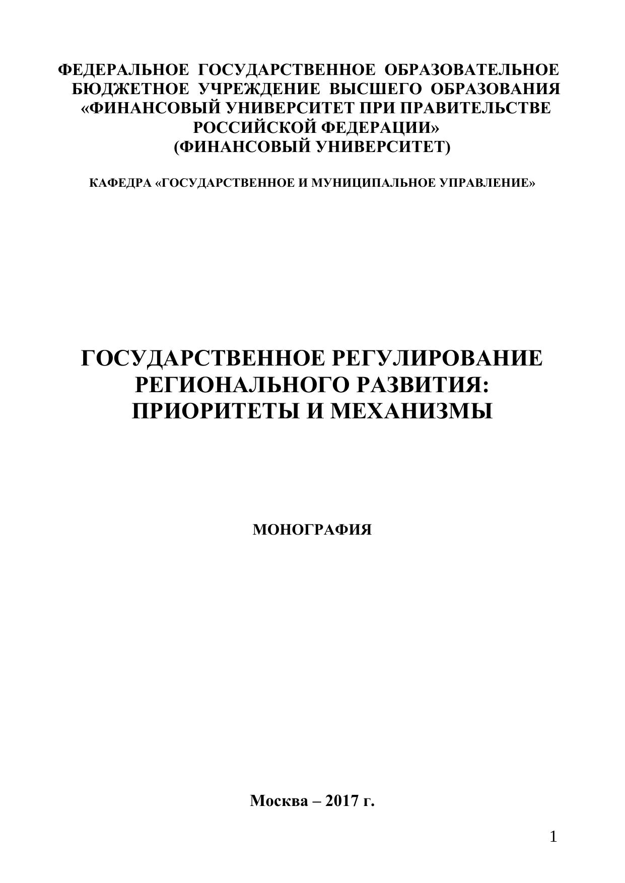 Государственное регулирование регионального развития: приоритеты и механизмы