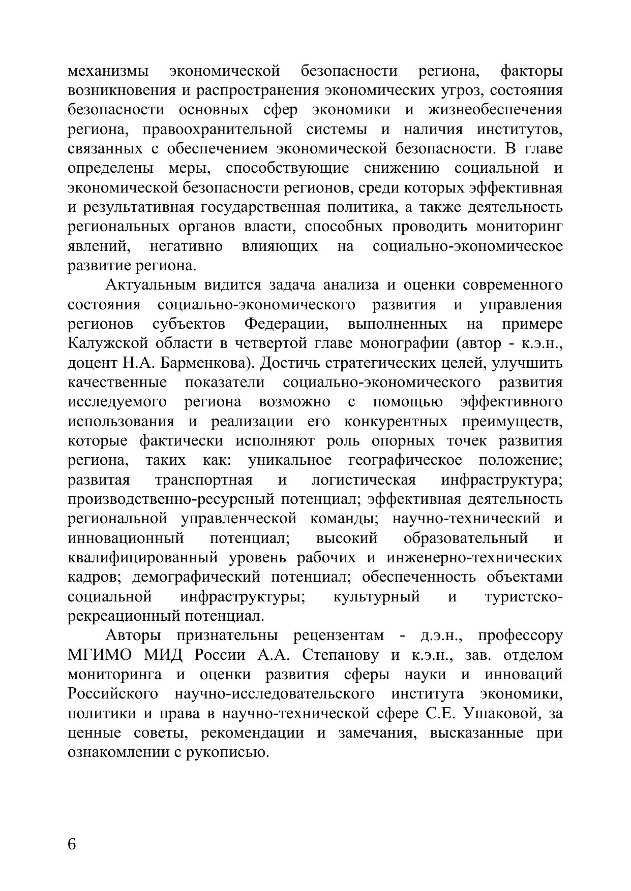 планирования намечаемых приоритетных направлений, целей и задач, времени и последовательности выполнения документов. В монографии раскрыты вопросы социально-экономической безопасности российских регионов, в частности, дана оценка демографической и продовольственной безопасности в региональном разрезе, проведена типология регионов по уровню энергетической безопасности.