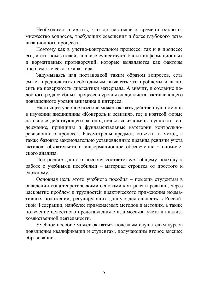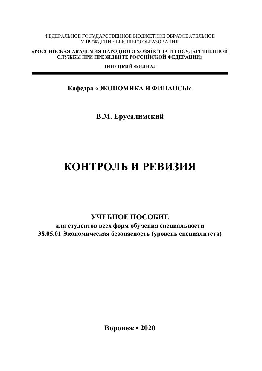 Учебное пособие содержит вопросы, раскрывающие процесс обеспечения финансового контроля и производства ревизии в теоретическом подходе как в коммерческих организациях, так и на предприятиях бюджетной сферы. Методические основы проведения контрольно-ревизионных задач в реальном секторе экономики способствуют повышению финансовой дисциплины и уровня экономической безопасности. Основной цель работы посвящена рассмотрению комплекса теоретических бухгалтерско-экономических знаний, через современный учетный механизм, который обеспечивает стабильную хозяйственную деятельность предприятий любой формы собственности и сектора экономики, что в условиях современного налогового бремени позволяет решать текущие хозяйственные задачи на качественном уровне. Пособие предназначено для студентов всех форм обучения специальности 38.05.01 Экономическая безопасность, а также для слушателей курсов повышения квалификации и преподавателей дисциплин в рамках тематики данного учебного пособия.