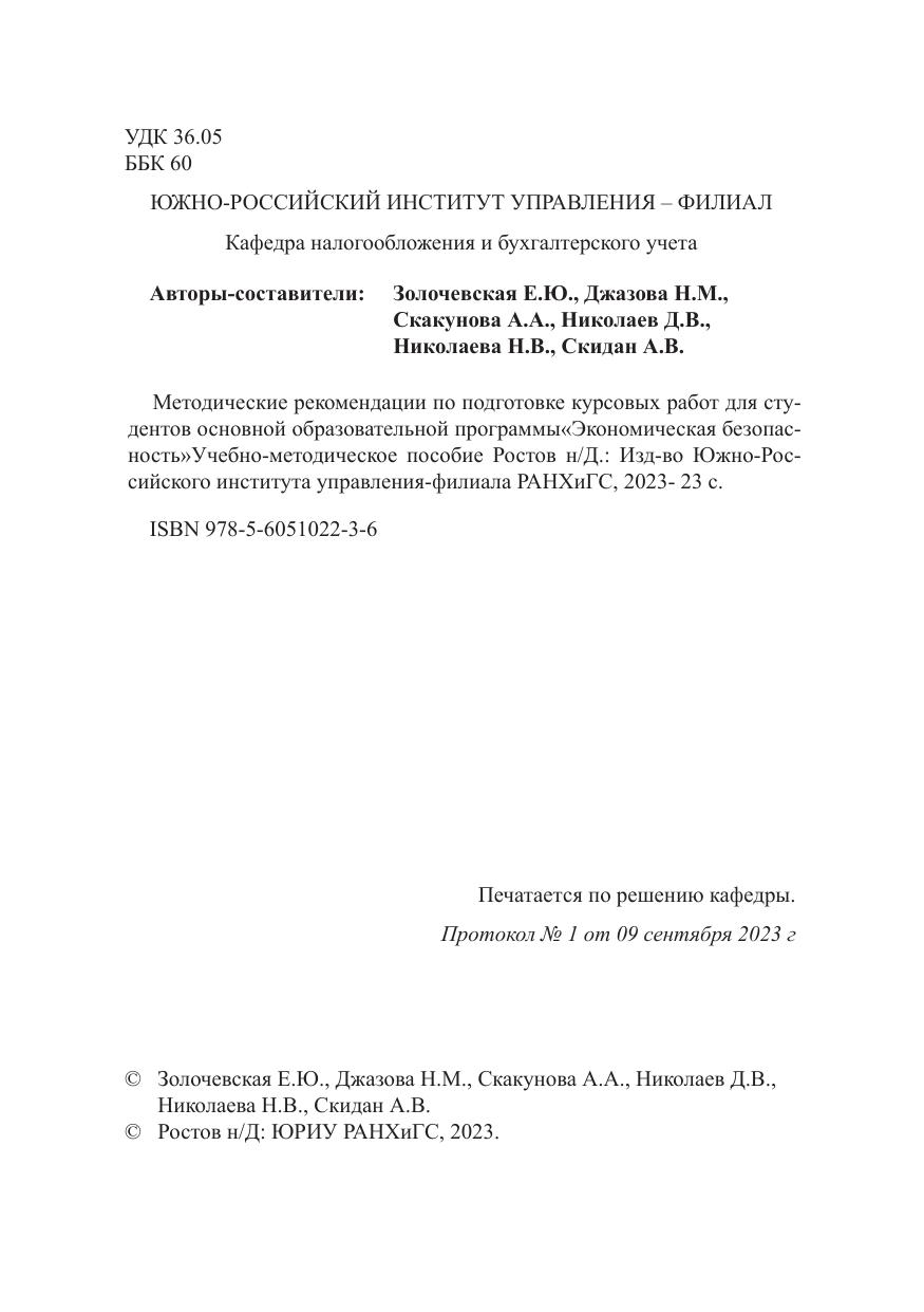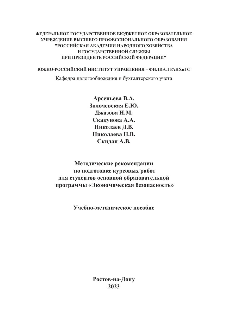 Методические рекомендации по подготовке курсовых работ для студентов основной образовательной программы«Экономическая безопасность»