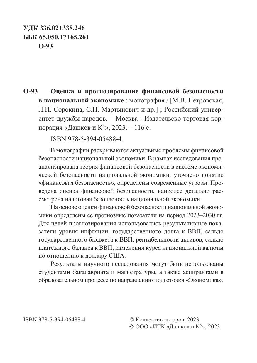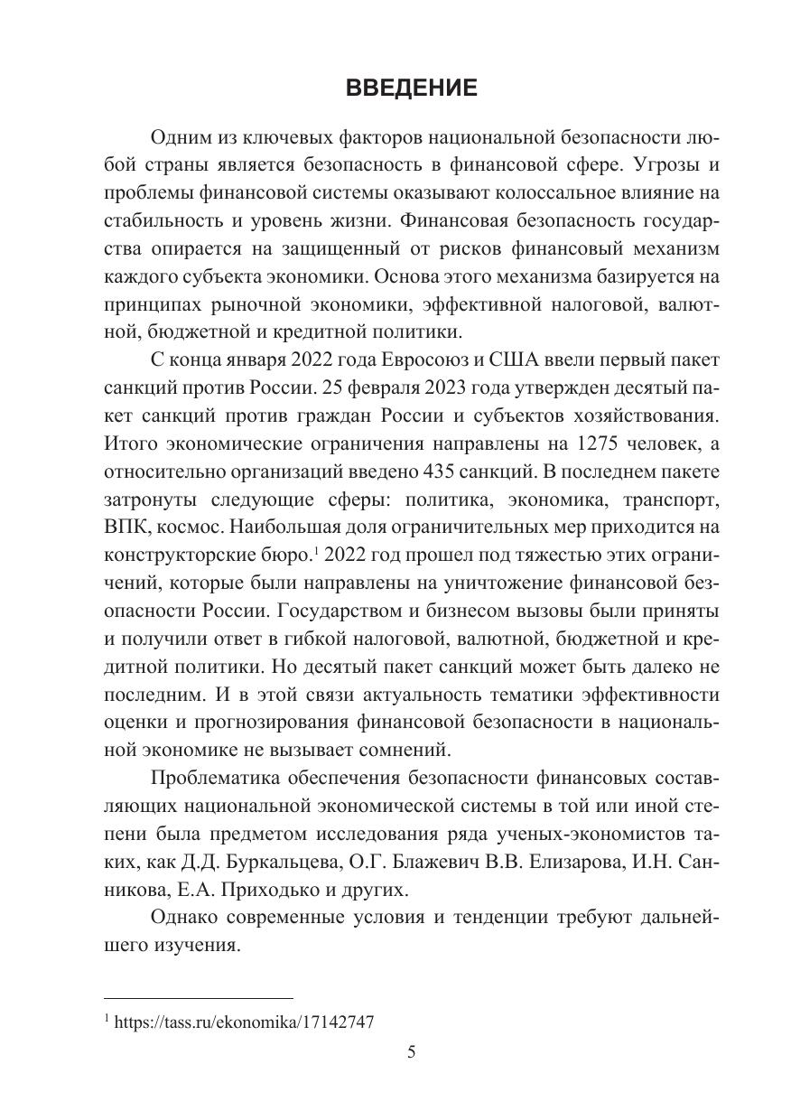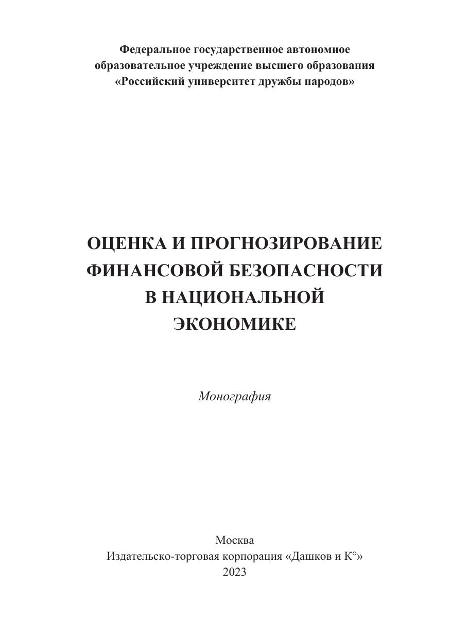 Оценка и прогнозирование финансовой безопасности в национальной экономике