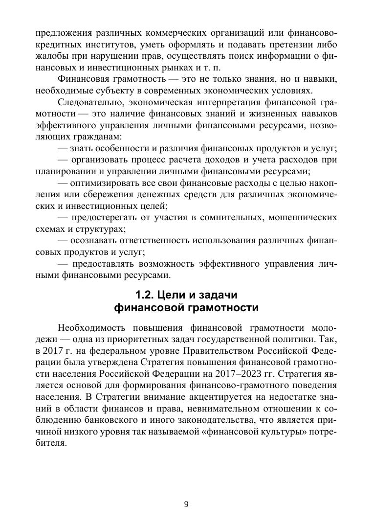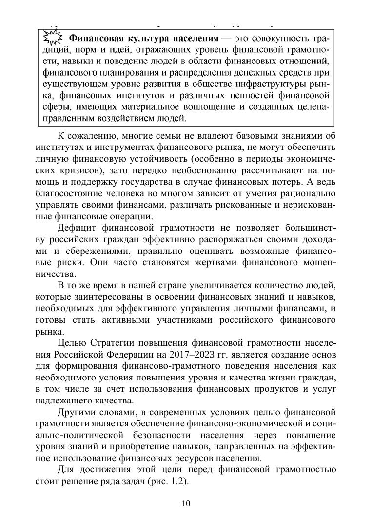 Учебник посвящен вопросам повышения финансовой грамотности населения в современных условиях и направлен на формирование навыков и компетенций финансово ответственного поведения и обеспечения личной финансовой безопасности и устойчивости. Содержание учебника включает тематические направления, наиболее актуальные в условиях расширения финансовых услуг, усложнения и появления новых финансовых инструментов, роста финансового мошенничества. Контрольные вопросы и тестовые задания, предлагаемые к каждой главе, способствуют закреплению знаний в ходе самостоятельной работы обучающихся. Соответствует актуальным требованиям Федерального государственного образовательного стандарта среднего профессионального образования и профессиональным требованиям. Предназначен для студентов образовательных учреждений, обучающихся по всем программам обучения, а также для лиц, интересующихся вопросами повышения финансовой грамотности.