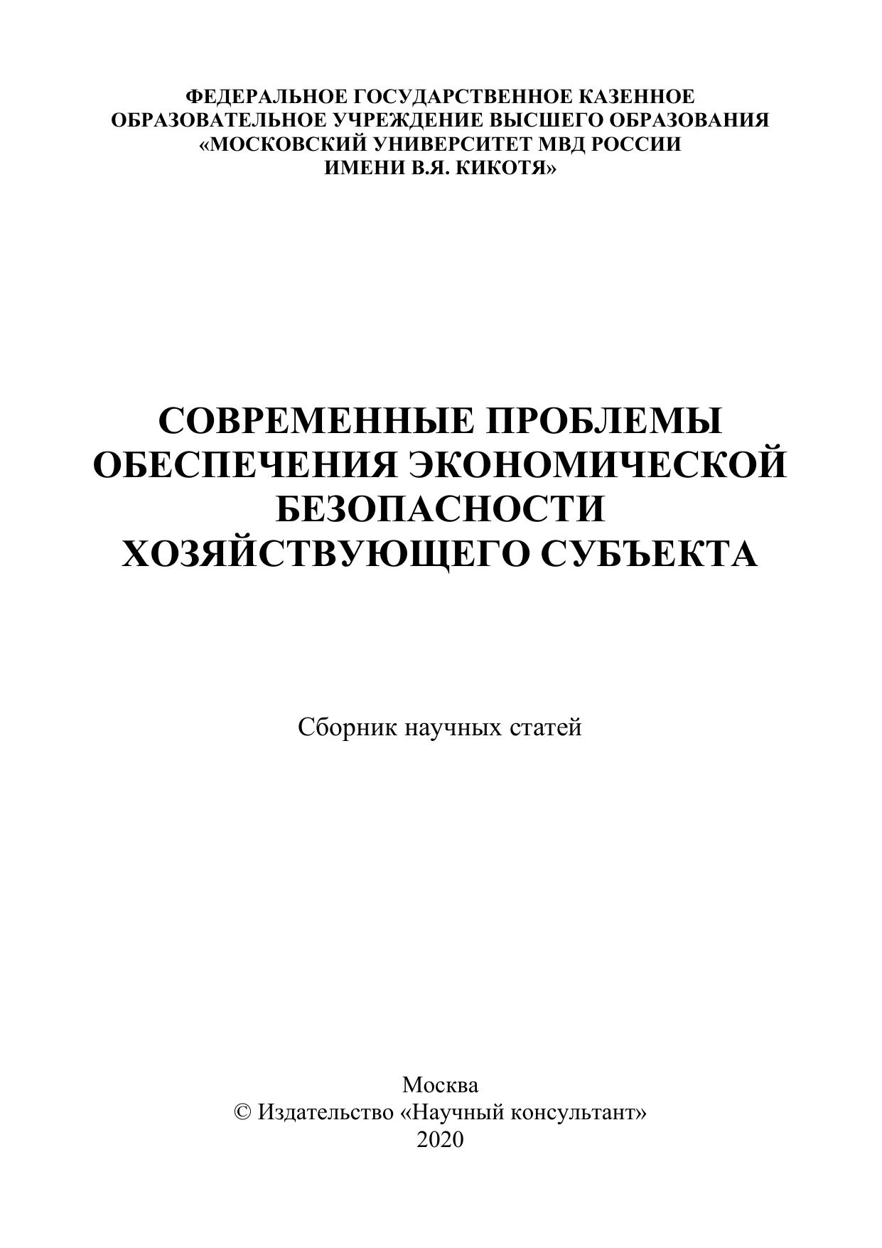 Современные проблемы обеспечения экономической безопасности хозяйствующего субъекта