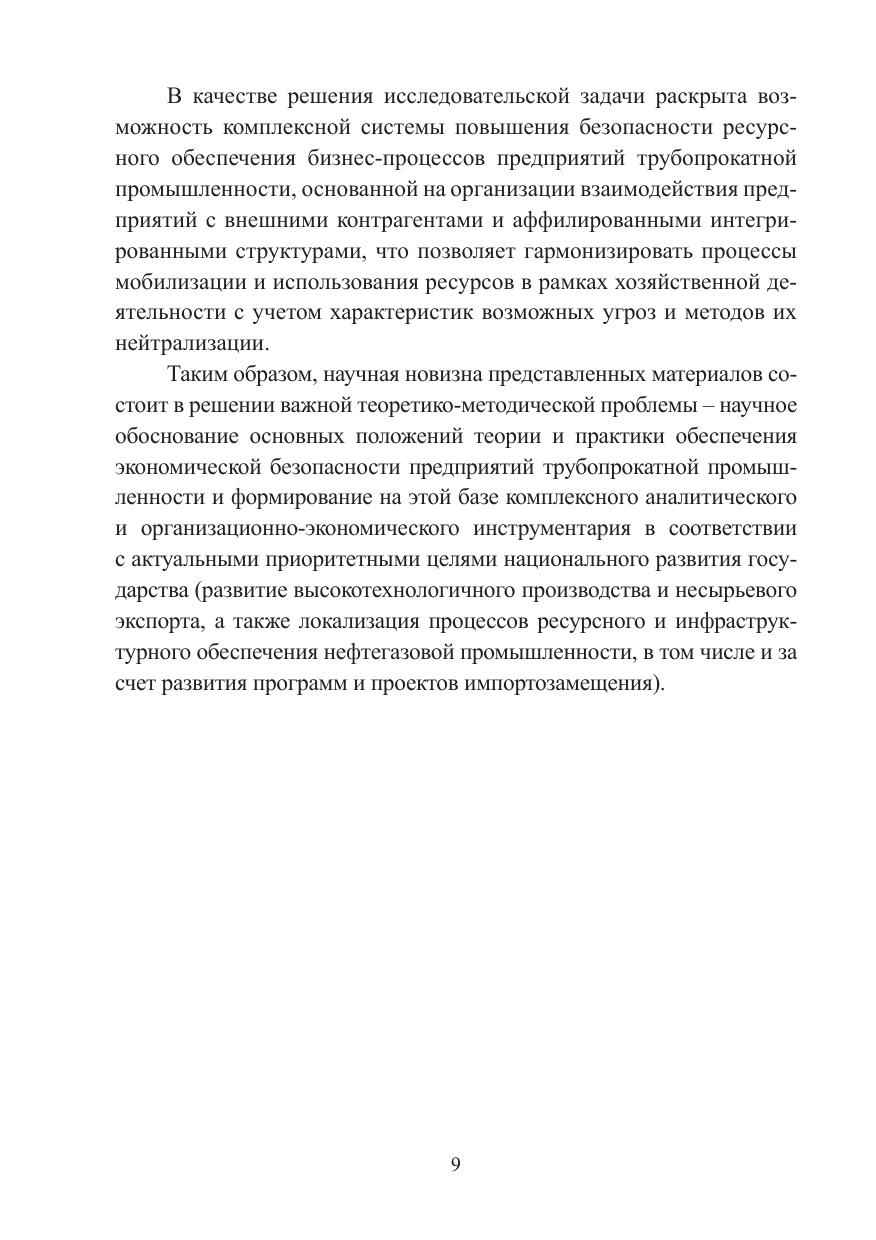 Автором разработаны организационные механизмы обеспечения экономической безопасности предприятий трубопрокатной промышленности Российской Федерации в условиях санкций. При этом предложена комплексная система повышения безопасности ресурсного обеспечения бизнес-процессов указанных предприятий.