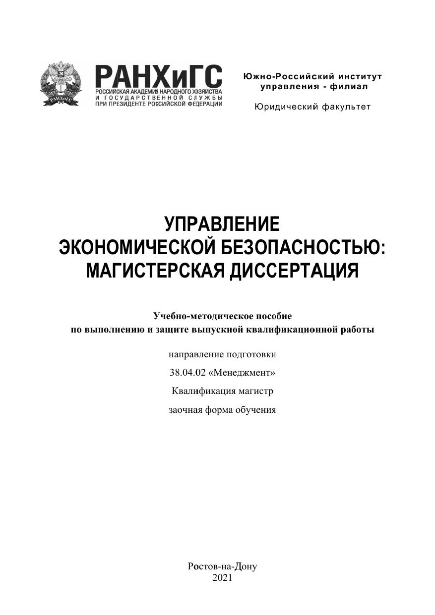 Управление экономической безопасностью: магистерская диссертация