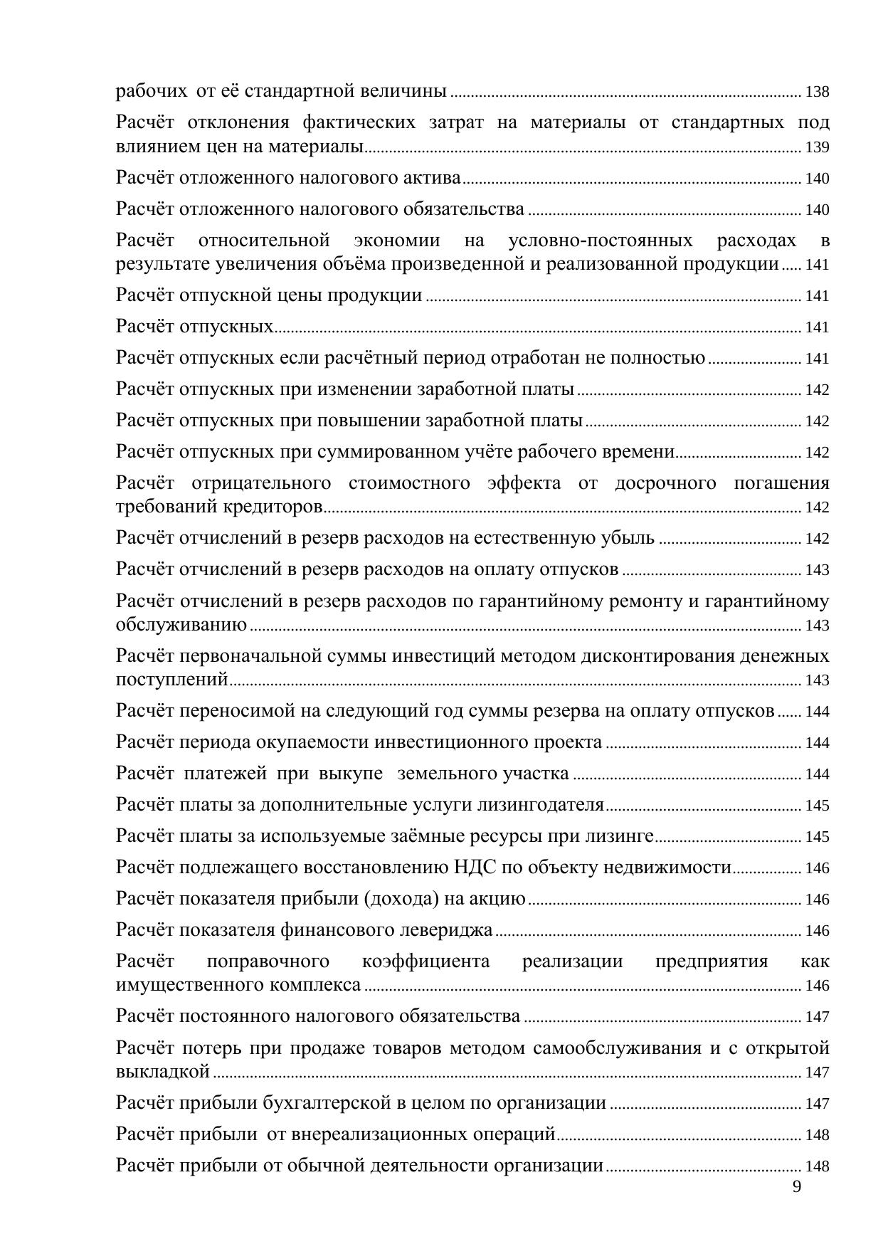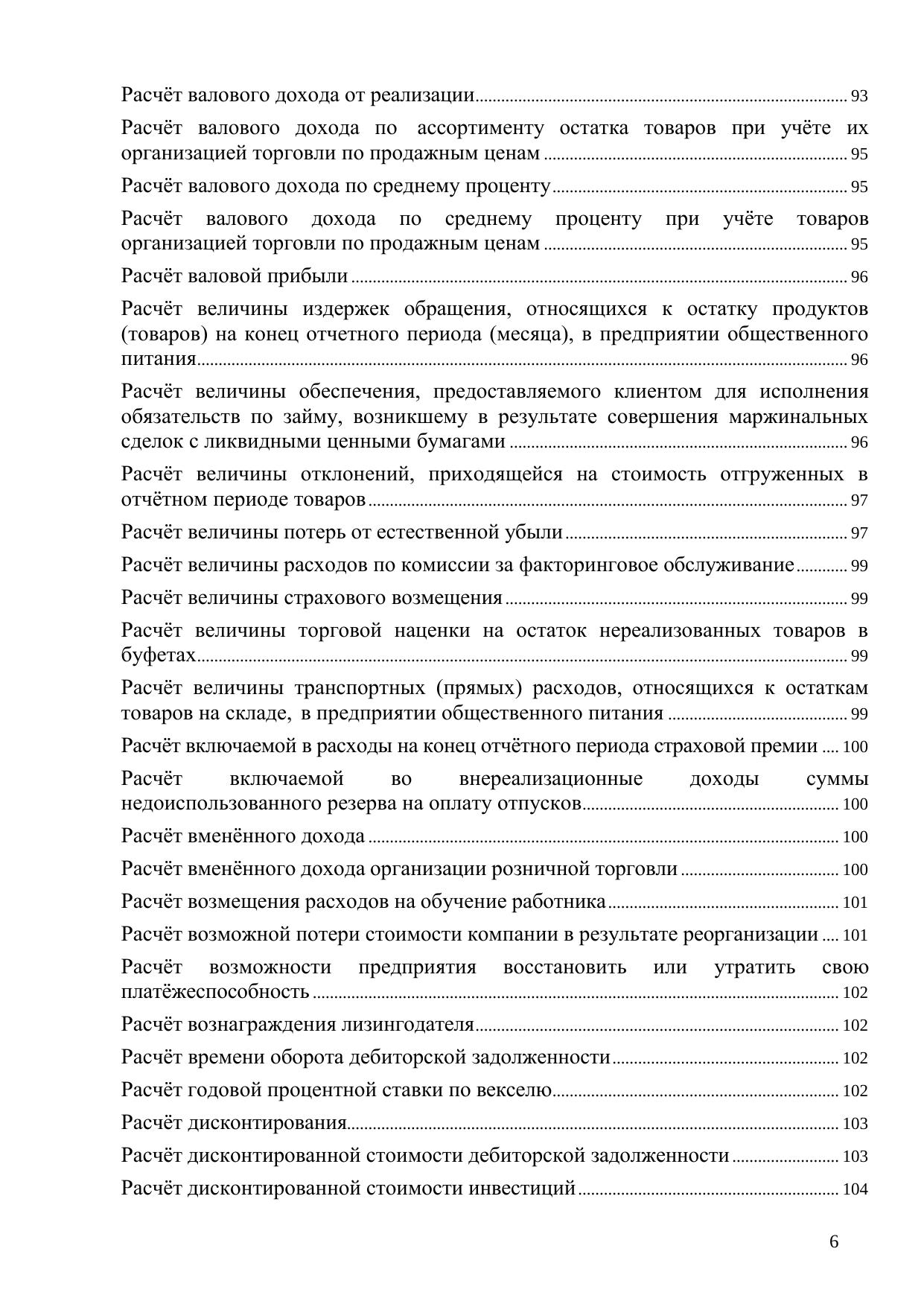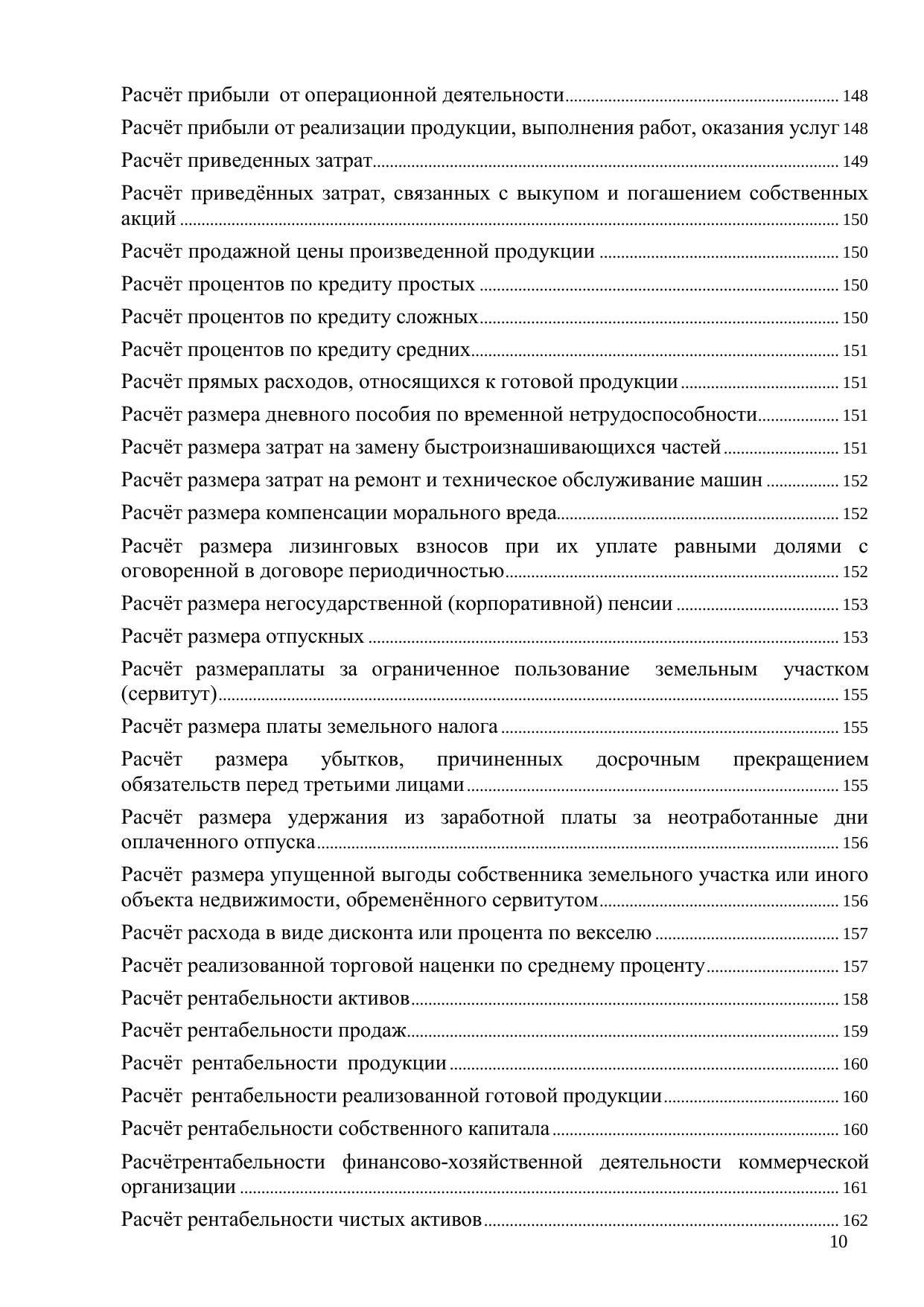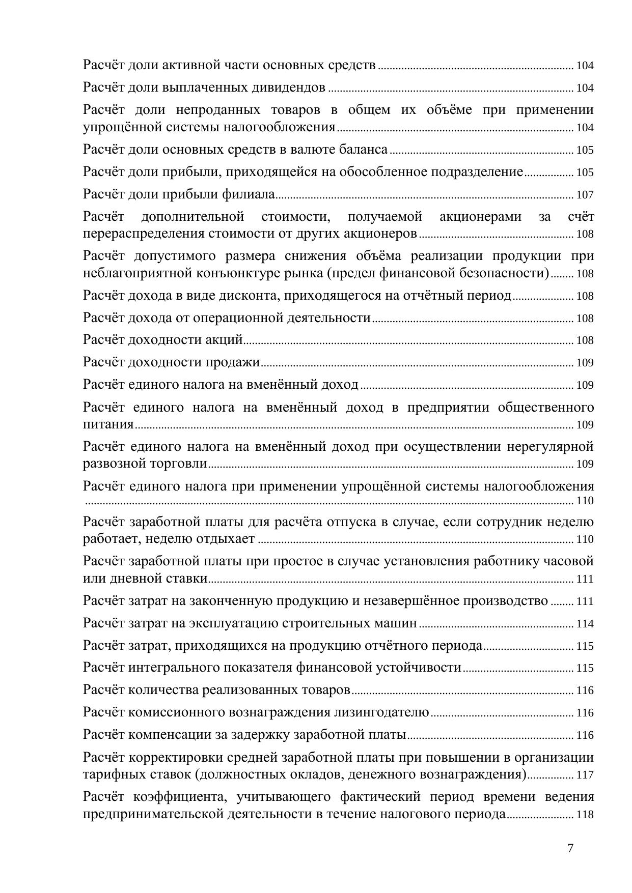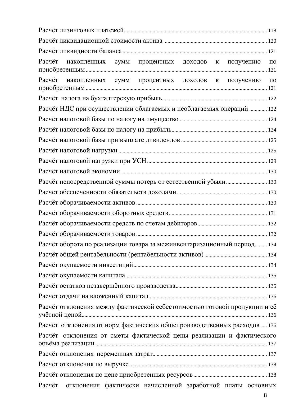 Книга посвящена порядку и особенностям производства различных экономических расчетов, в том числе средней заработной платы (применительно к различным условиям), сумм отпускных, компенсаций, отчислений в резервы, налоговой базы, ценообразующих факторов, различных платежей, стоимости активов организации, амортизации при начислении амортизационной премии, будущей стоимости инвестиций, бухгалтерской прибыли в целом по организации, валового дохода от реализации товаров, валовой прибыли, величины отклонений, приходящейся на стоимость отгруженных в отчетном периоде товаров, вмененного дохода, возможной потери стоимости компании в результате реорганизации, вознаграждения лизингодателя, дисконтированной стоимости дебиторской задолженности, доли прибыли, приходящейся на обособленное подразделение, дополнительной стоимости, получаемой акционерами за счет перераспределения стоимости от ущерба (убытков) применительно к различным хозяйственным ситуациям и др.; предназначена для нахождения в общем массиве конкретного материала на основе применения принципа «по ситуации»; содержит в алфавитном порядке разделы, материал которых в краткой и конкретной форме (формулы расчётов, содержание показателей и их применение) посвящен вопросам осуществления расчётов в рамках финансово-хозяйственной деятельности коммерческой организации. Для предпринимателей, практикующих экономистов, финансистов и бухгалтеров, а также студентов экономических факультетов. Книга может быть также полезна руководителям коммерческих организаций – особенно тем из них, кто со знанием дела контролирует своих подчиненных в финансово-экономическом секторе деятельности предприятия.