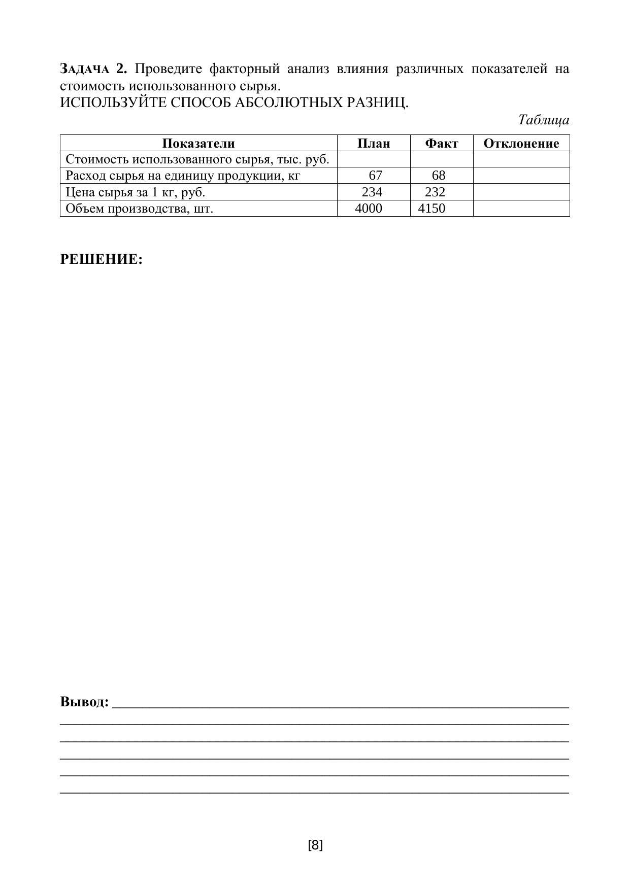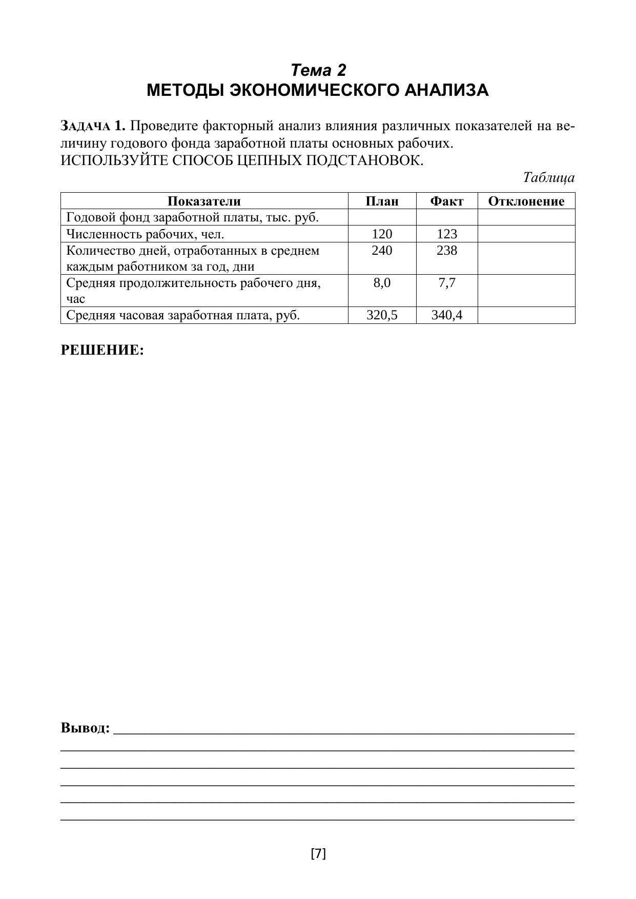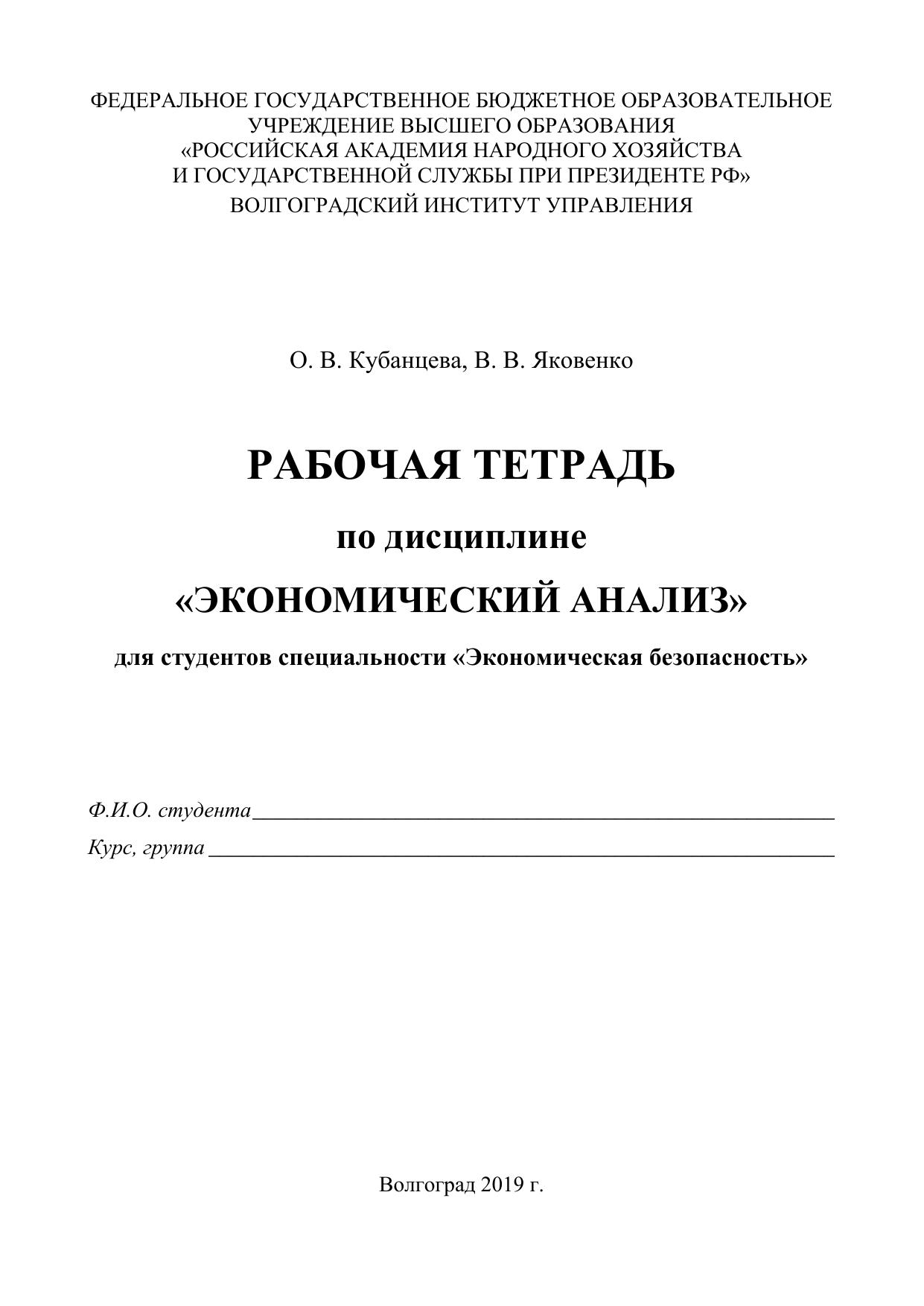 Рабочая тетрадь по экономическому анализу