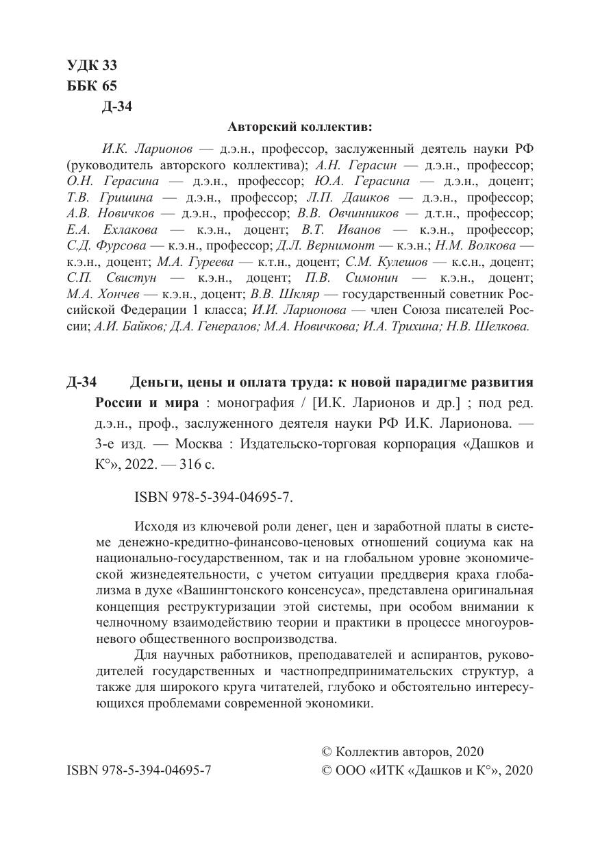 Деньги, цены и оплата труда: к новой парадигме развития России и мира