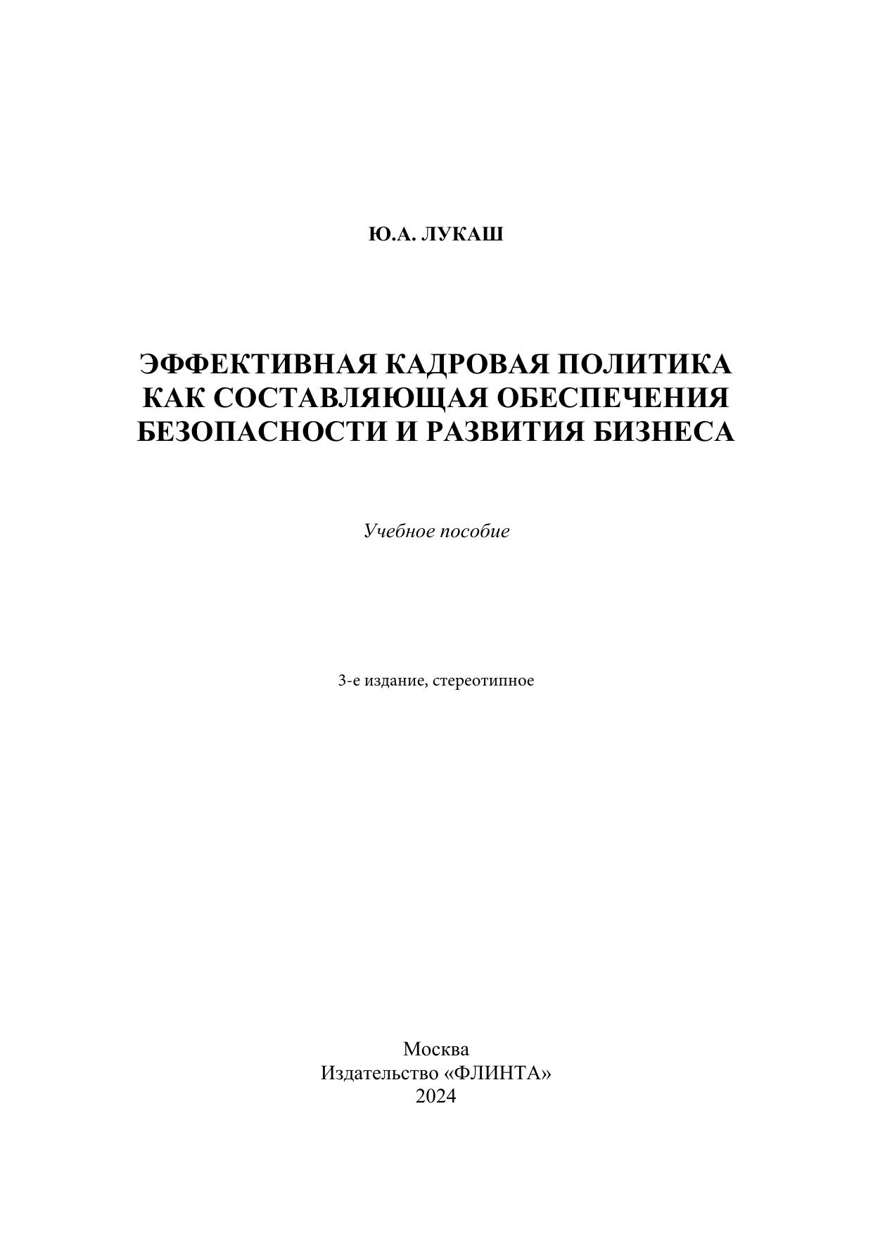 Эффективная кадровая политика как составляющая обеспечения безопасности и развития бизнеса