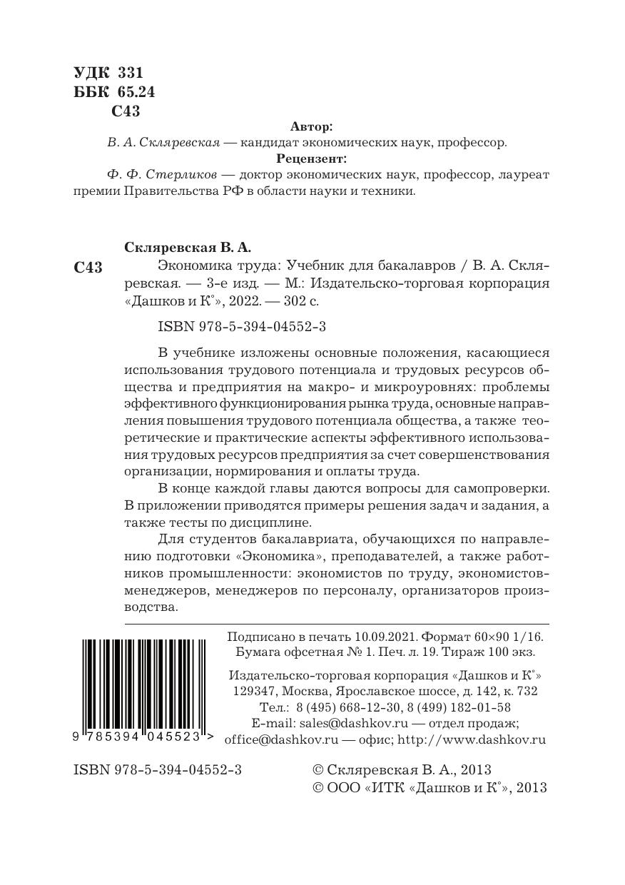 Учебник подготовлен в соответствии с Федеральным государственным образовательным стандартом высшего профессионального образования третьего поколения. В учебнике изложены основные положения, касающиеся использования трудового потенциала и трудовых ресурсов общества и предприятия на макро- и микроуровнях: проблемы повышения производительности индивидуального и общественного труда, эффективного функционирования рынка труда, обеспечения эффективной занятости, основные направления повышения трудового потенциала общества, а также теоретические и практические аспекты эффективного использования трудовых ресурсов предприятия за счет совершенствования организации, нормирования и оплаты труда. В конце каждой главы даются вопросы для самопроверки. В приложении приводятся примеры решения задач и задания, а также тесты по дисциплине. Для студентов бакалавриата, обучающихся по направлению подготовки «Экономика», преподавателей, а также работников промышленности: экономистов по труду, экономистов-менеджеров, менеджеров по персоналу, организаторов производства.