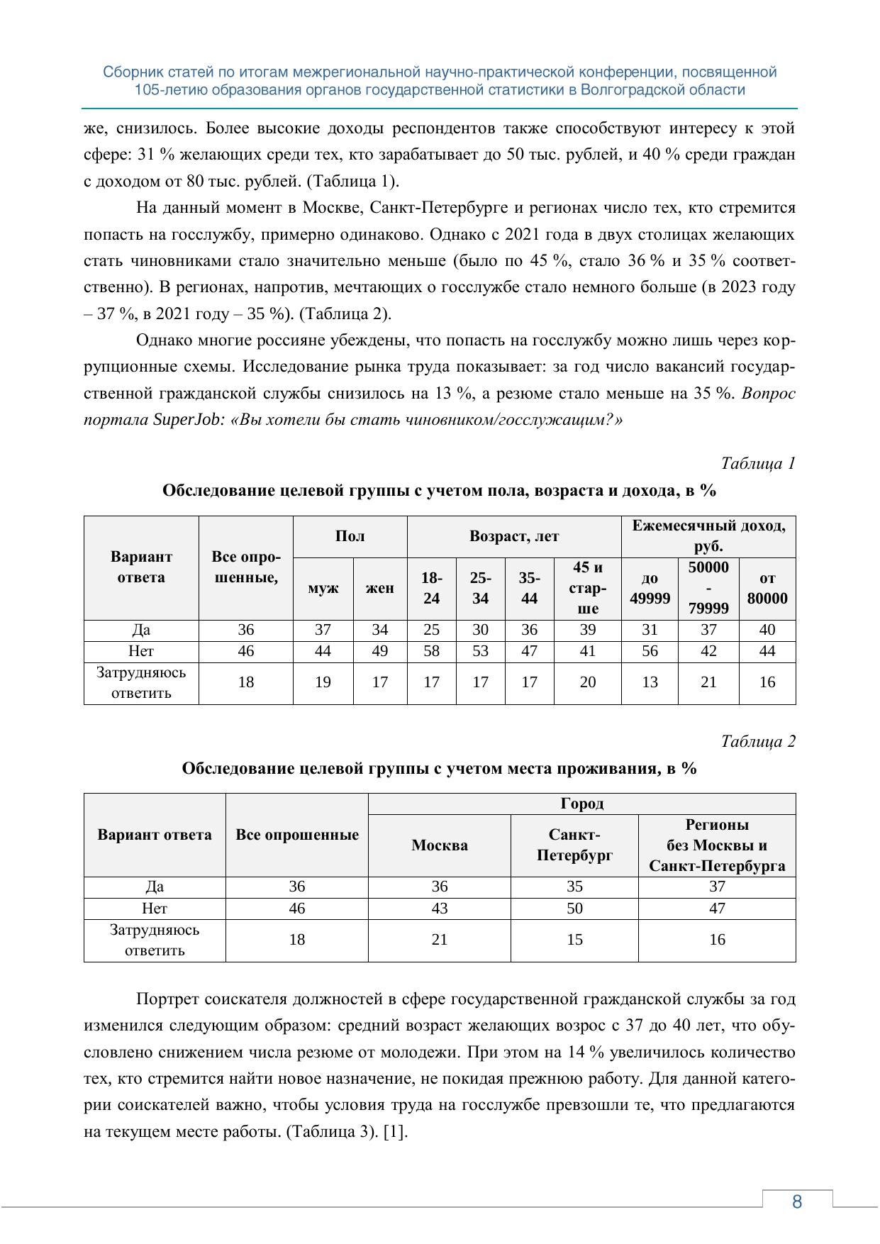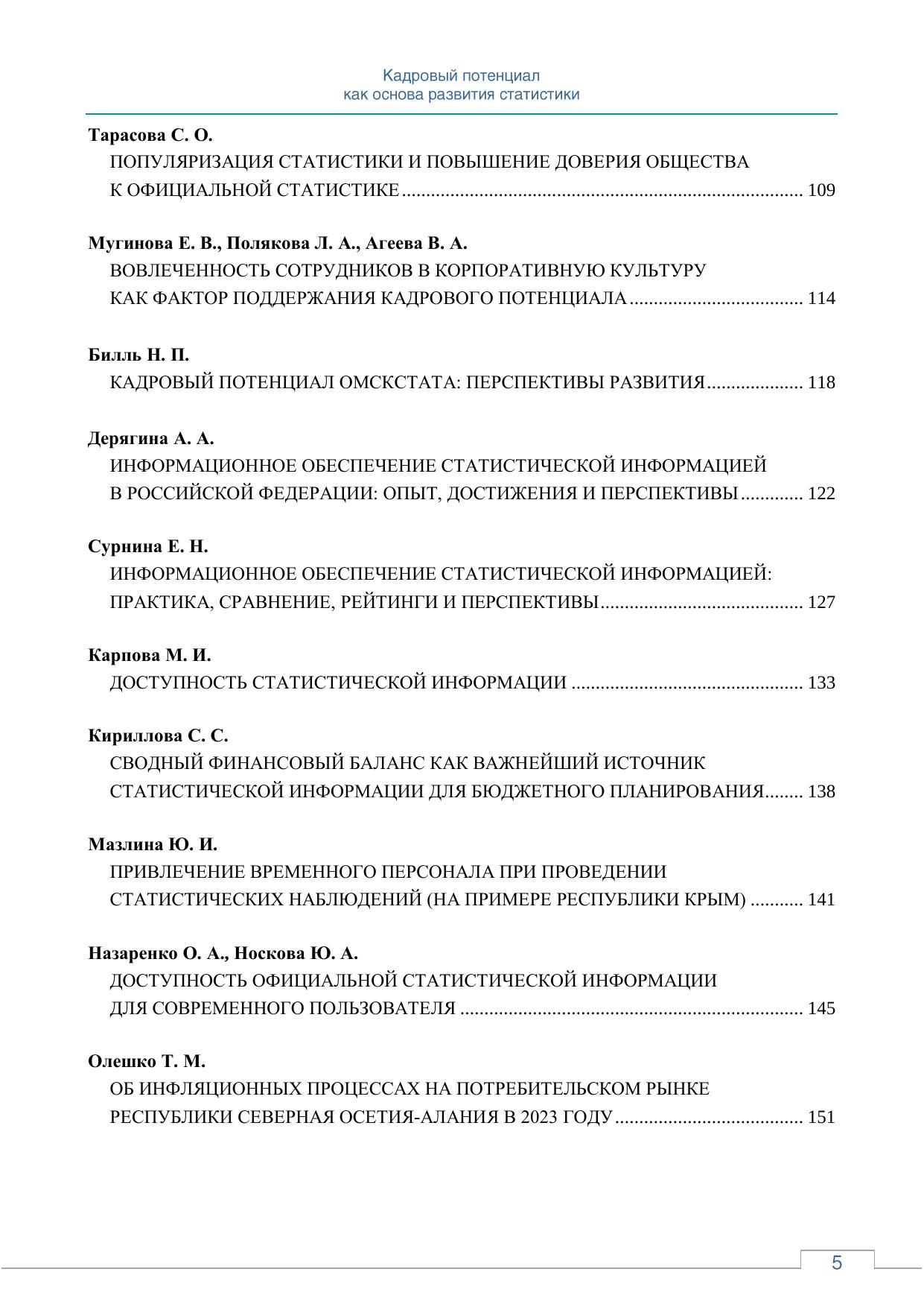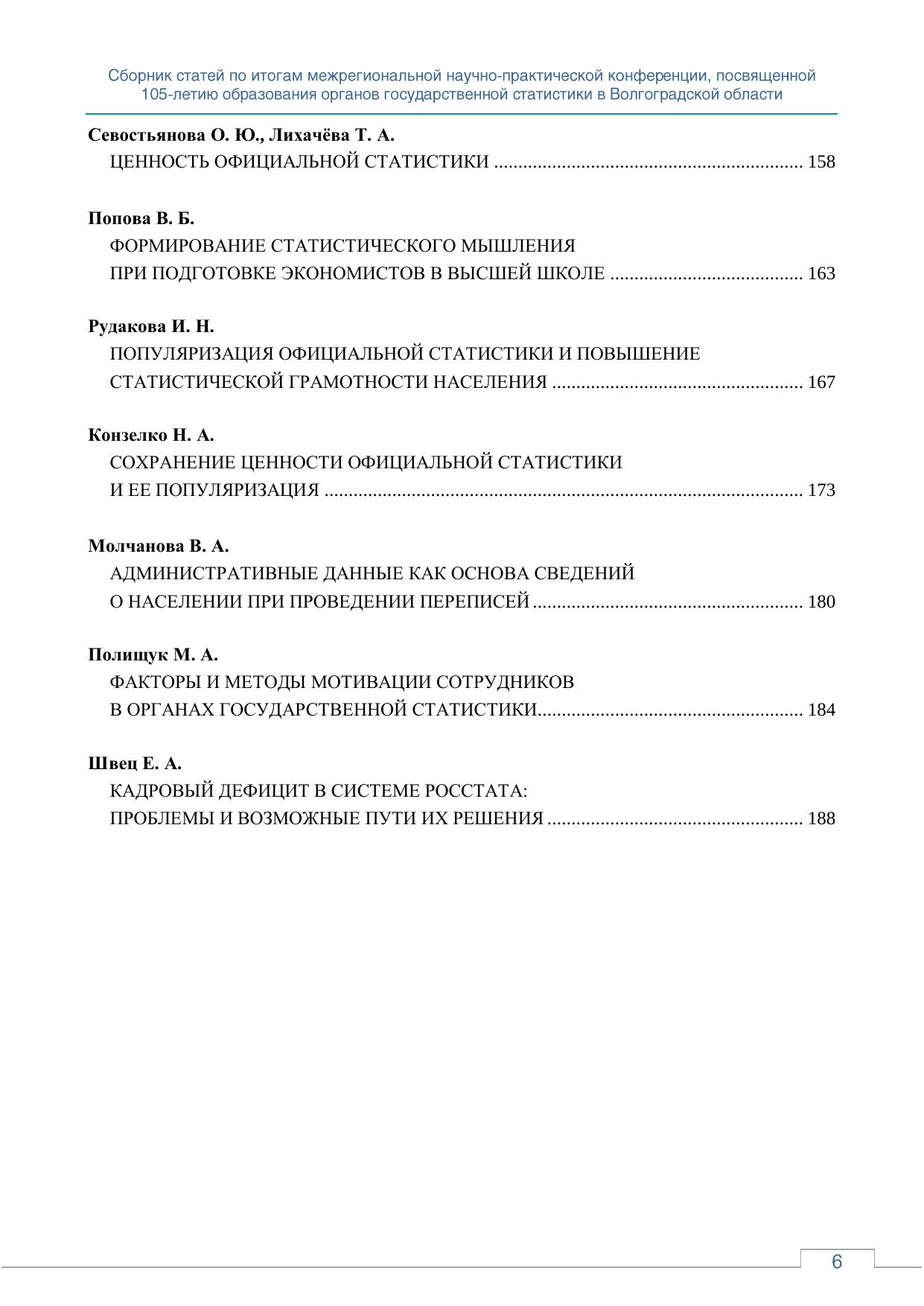 Кадровый потенциал как основа развития статистики: сборник статей по итогам межрегиональной научно-практической конференции, посвященной 105-летию образования органов государственной статистики в Волгоградской области; г. Волгоград, 2024 г.