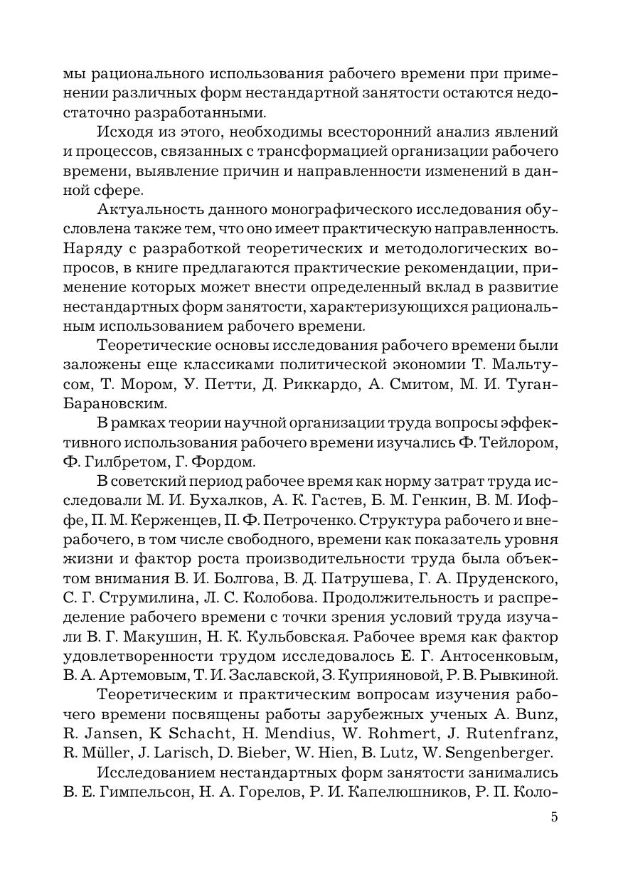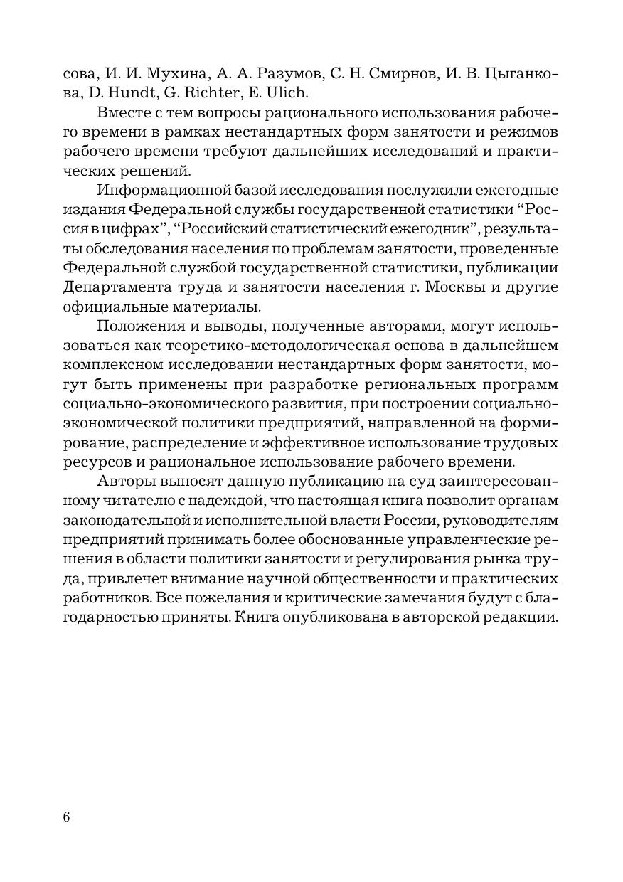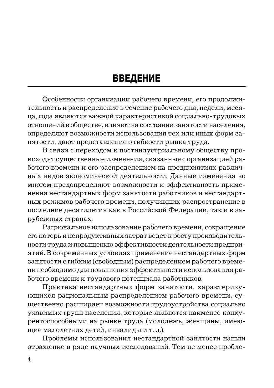 Нестандартная занятость является основной тенденцией изменения социально-трудовых отношений в современных условиях. Появление многих ее форм обусловлено трансформацией организации рабочего времени и его распределения на предприятиях различных видов экономической деятельности. В этой связи в монографии дается представление об отдельных формах нестандартной занятости: как новых, возникших в начале XXI в., так и традиционных, существовавших ранее. Особое внимание уделено факторам, влияющим на выбор форм занятости, экономическим и социальным преимуществам и недостаткам отдельных форм с позиции использования рабочего времени. Авторами предлагается методика оценки влияния отдельных форм нестандартной занятости на рынок труда на макро-, мезо- и микроуровне. В рамках исследования сформулированы основные направления улучшения использования рабочего времени на основе развития нестандартной занятости. Монография адресована представителям органов законодательной и исполнительной власти, отвечающим за политику в области занятости, руководителям и специалистам предприятий, научным работникам, аспирантам, студентам экономических специальностей вузов.