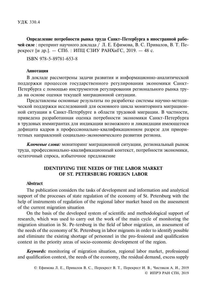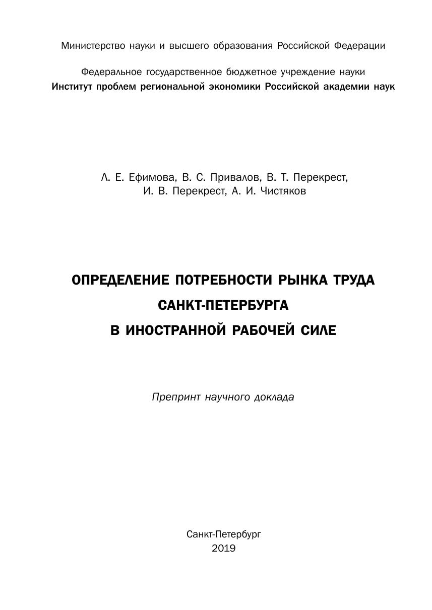 Определение потребности рынка труда Санкт-Петербурга в иностранной рабочей силе: препринт научного доклада
