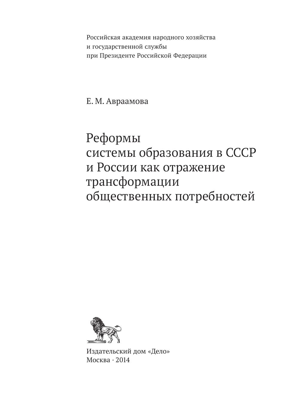 Реформы системы образования в СССР и России как отражение трансформации общественных потребностей