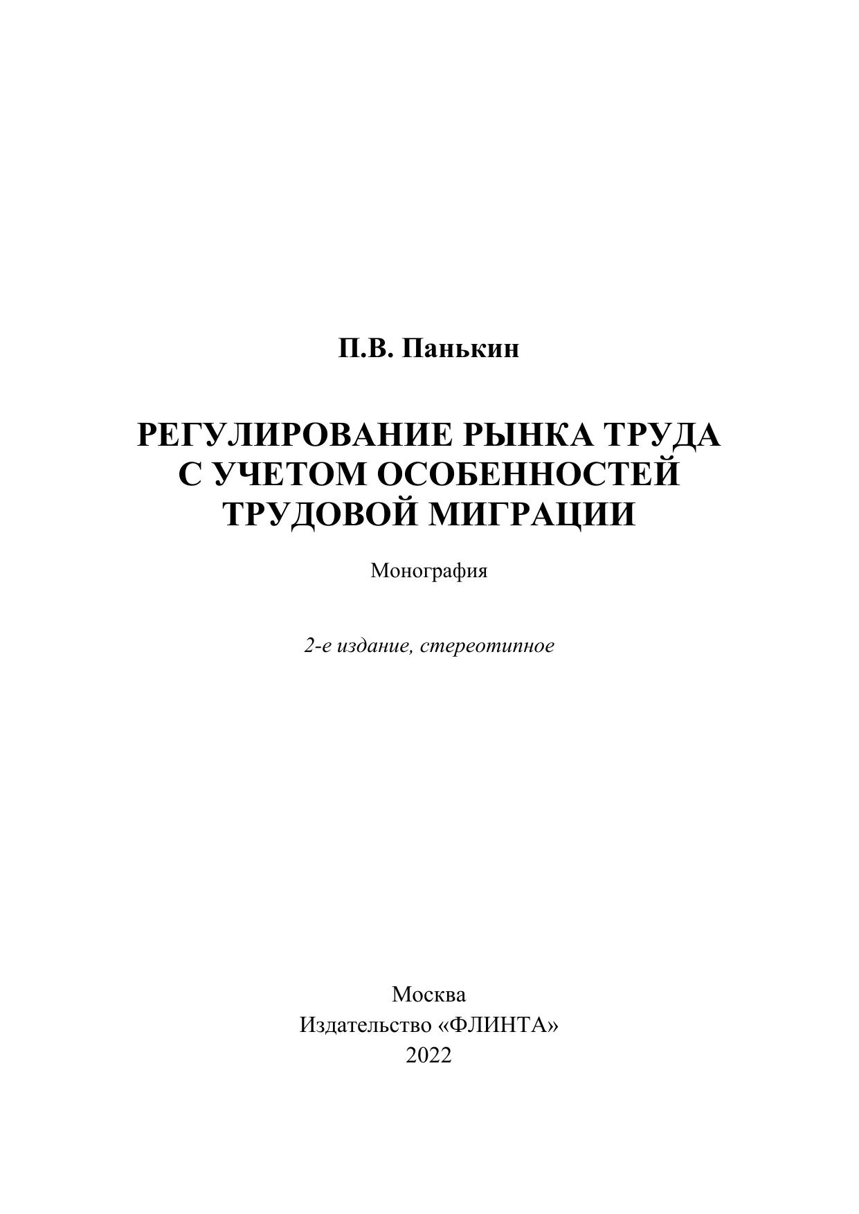Регулирование рынка труда с учетом особенностей трудовой миграции