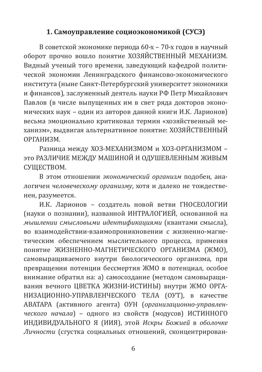Исходя из того, что уходящая в прошлое эпоха диалектики единства и борьбы противоположностей сменяется эпохой синергии преображения, авторы монографии предлагают концепцию самоуправляемой социоэкономики. Внедрение данной концепции позволит развернуть российскую экономику в направлении ведущего здоровый образ жизни человека и существенно повысить эффективность хозяйствования за счет синергии самоуправления трудовых коллективов и народно-государственного управления многомерным общественным производством как единой синергетической цельностью.