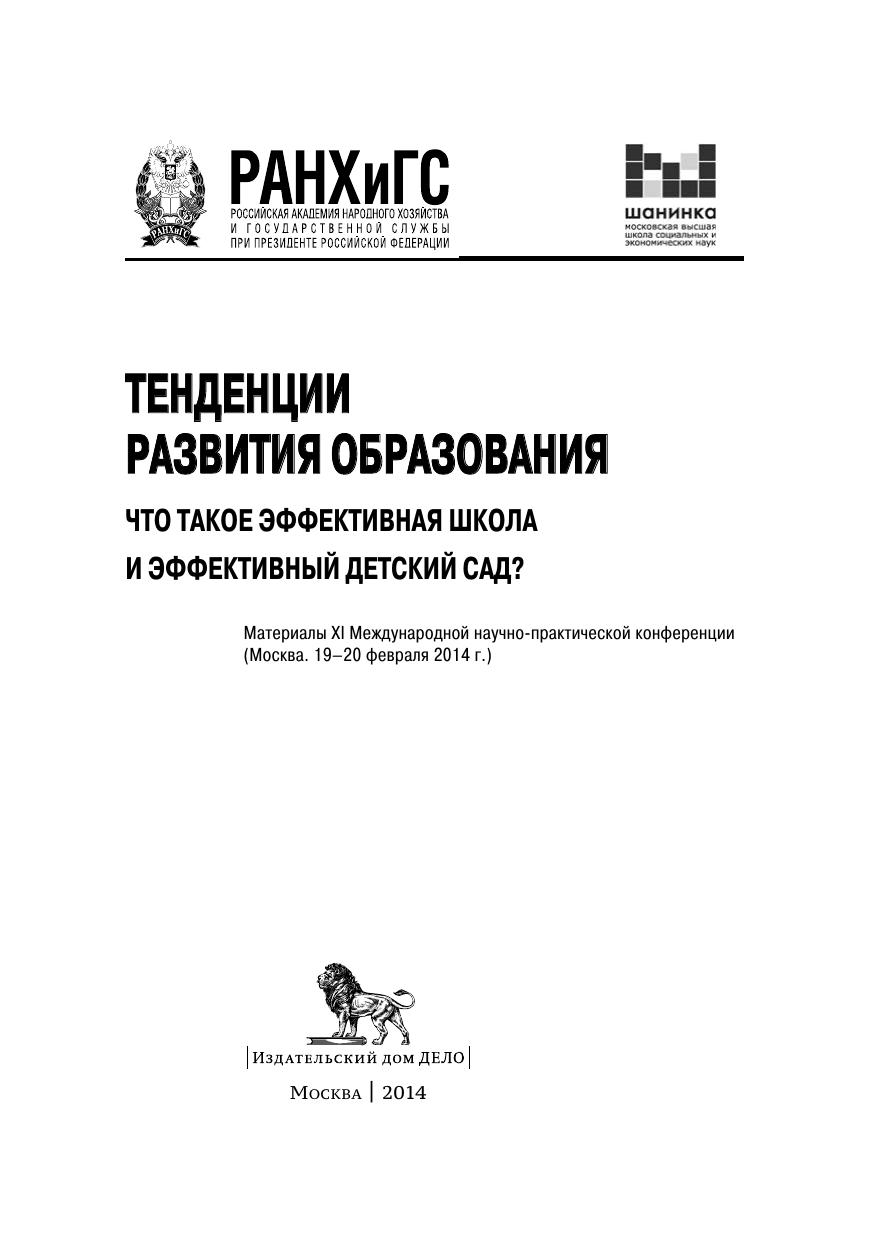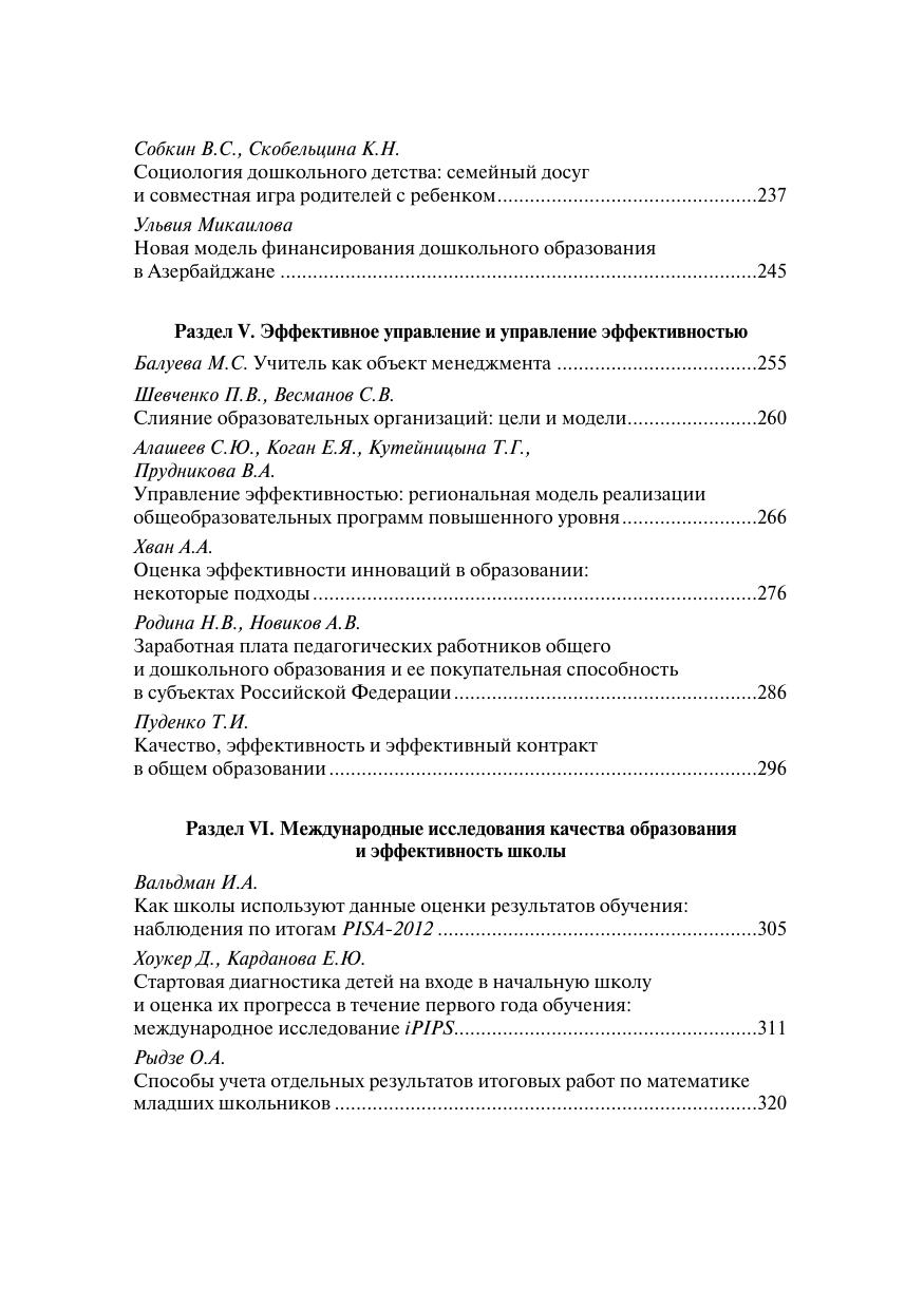 В сборнике обсуждаются изменения социокультурной и экономической ситуации в школьном и дошкольном образовании, новые требования к критериям оценки эффективности школ и дошкольных учреждений, рычаги воздействия на образовательную систему в целом и на отдельные учебные заведения в чавстности с целью повышения качества образования и эффективности управления. Материалы представляют интерес для ученых и специалистов, исследующих современные проблемы образования, а также работников органов управления образованием, руководителей учебных заведений, для программ повышения квалификации, а также широкого круга научно-педагогических работников