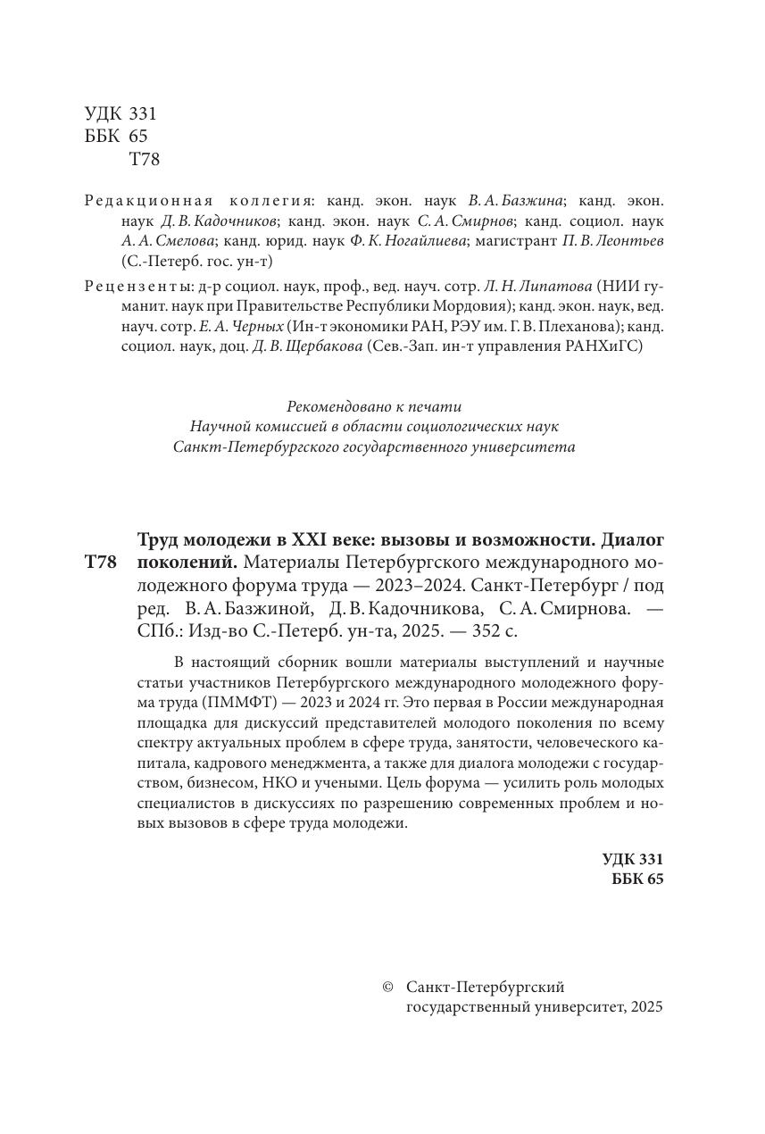 Труд молодежи в XXI веке: вызовы и возможности. Диалог поколений. Материалы международного молодежного форума труда - 2023-2024. Санкт-Петербург
