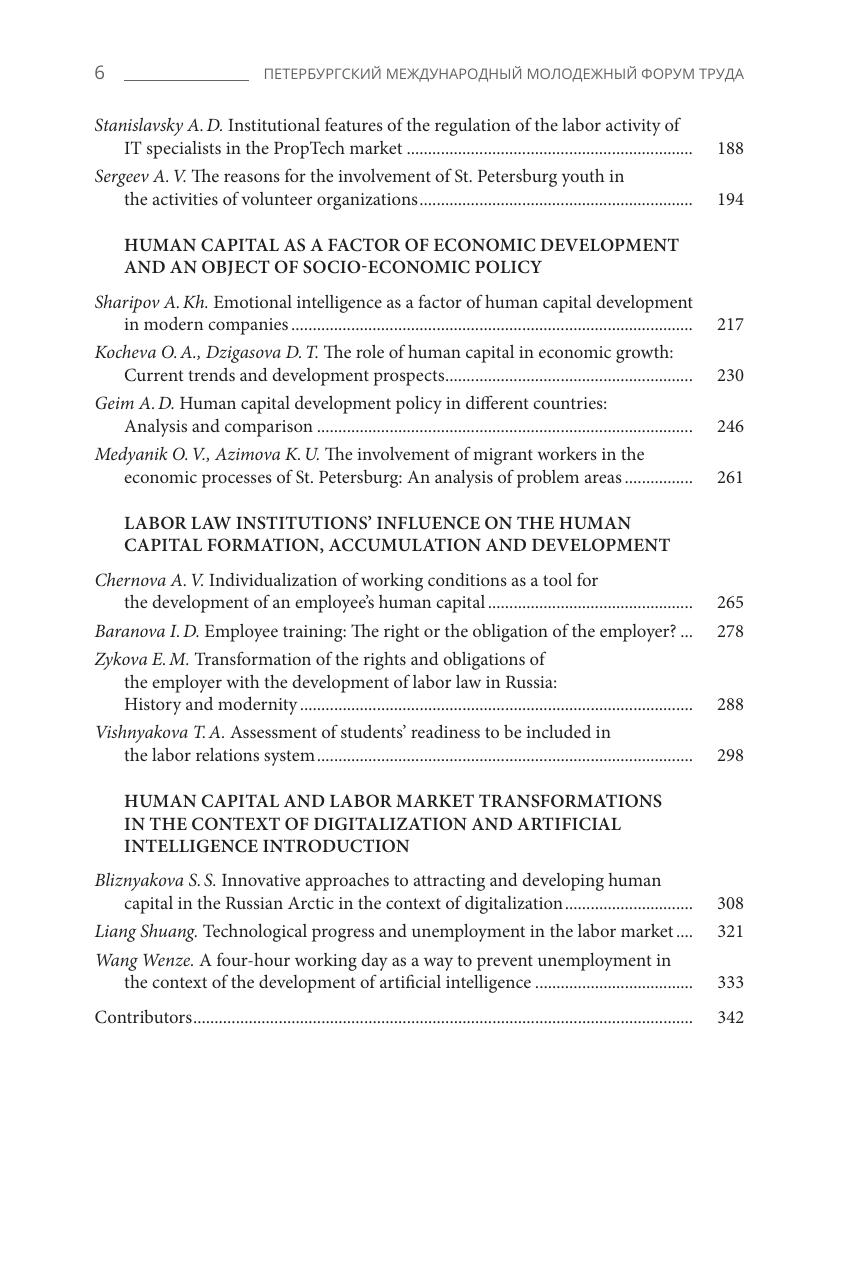 В настоящий сборник вошли материалы выступлений и научные статьи участников Петербургского международного молодежного форума труда (ПММФТ) - 2023 и 2024 гг. Это первая в России международная площадка для дискуссий представителей молодого поколения по всему спектру актуальных проблем в сфере труда, занятости, человеческого капитала, кадрового менеджмента, а также для диалога молодежи с государством, бизнесом, НКО и учеными. Цель форума - усилить роль молодых специалистов в дискуссиях по разрешению современных проблем и новых вызовов в сфере труда молодежи.