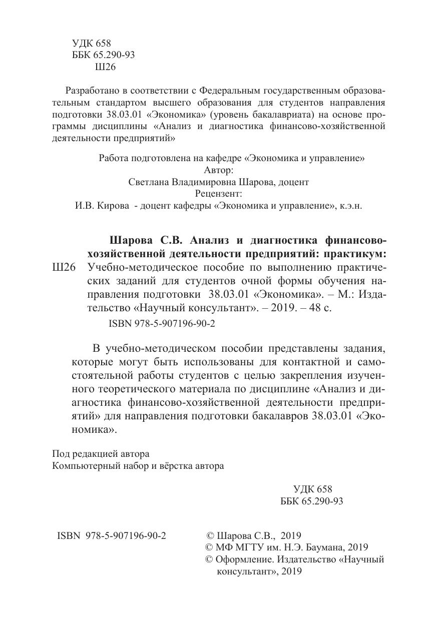 В учебно-методическом пособии представлены задания, которые могут быть использованы для контактной и самостоятельной работы студентов с целью закрепления изученного теоретического материала по дисциплине «Анализ и диагностика финансово-хозяйственной деятельности предприятий» для направления подготовки бакалавров 38.03.01 «Экономика».