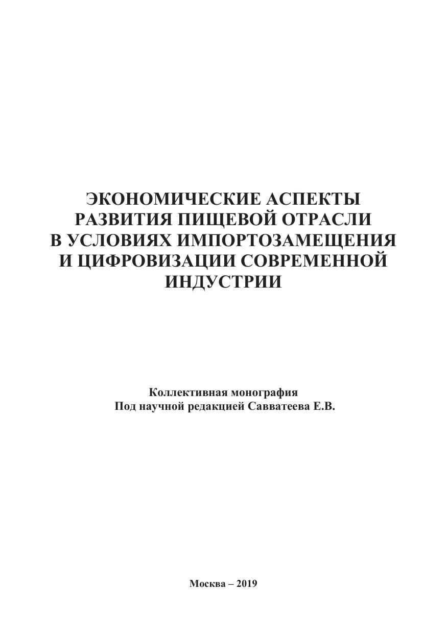 Экономические аспекты развития пищевой отрасли в условиях импортозамещения и цифровизации современной индустрии