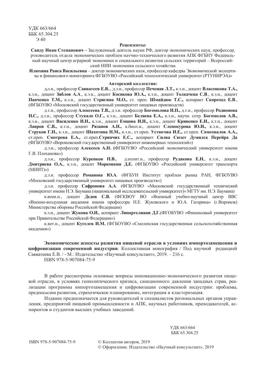 В работе рассмотрены основные вопросы инновационно-экономического развития пищевой отрасли, в условиях геополитического кризиса, санкционного давления западных стран, реализации программы импортозамещения и цифровизации современной индустрии: проблемы, предпосылки развития, стратегическое планирование, интеграция и кластеризация. Издание предназначается для руководителей и специалистов региональных органов управления, предприятий пищевой промышленности и АПК, научных работников, преподавателей, аспирантов и студентов высших учебных заведений