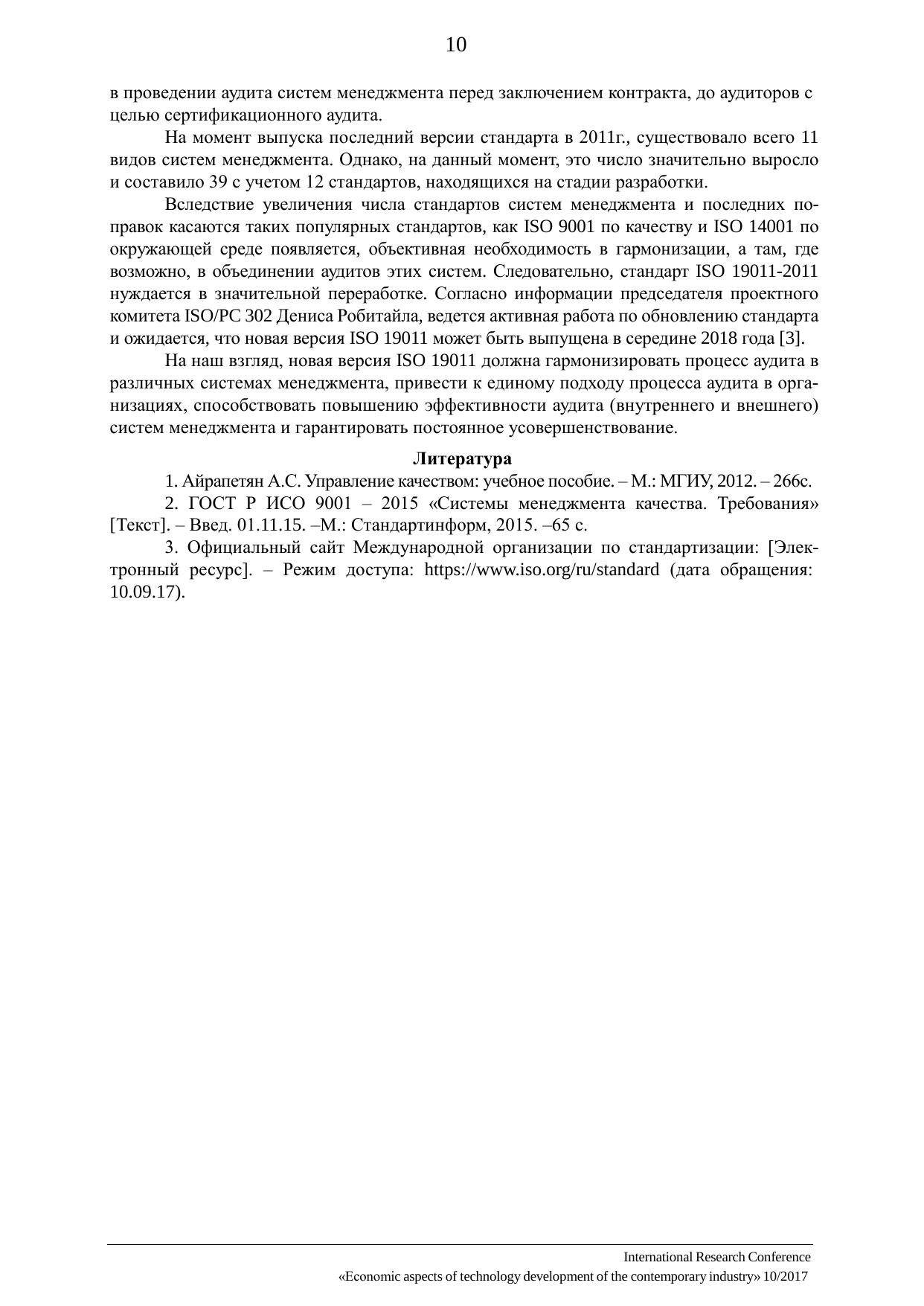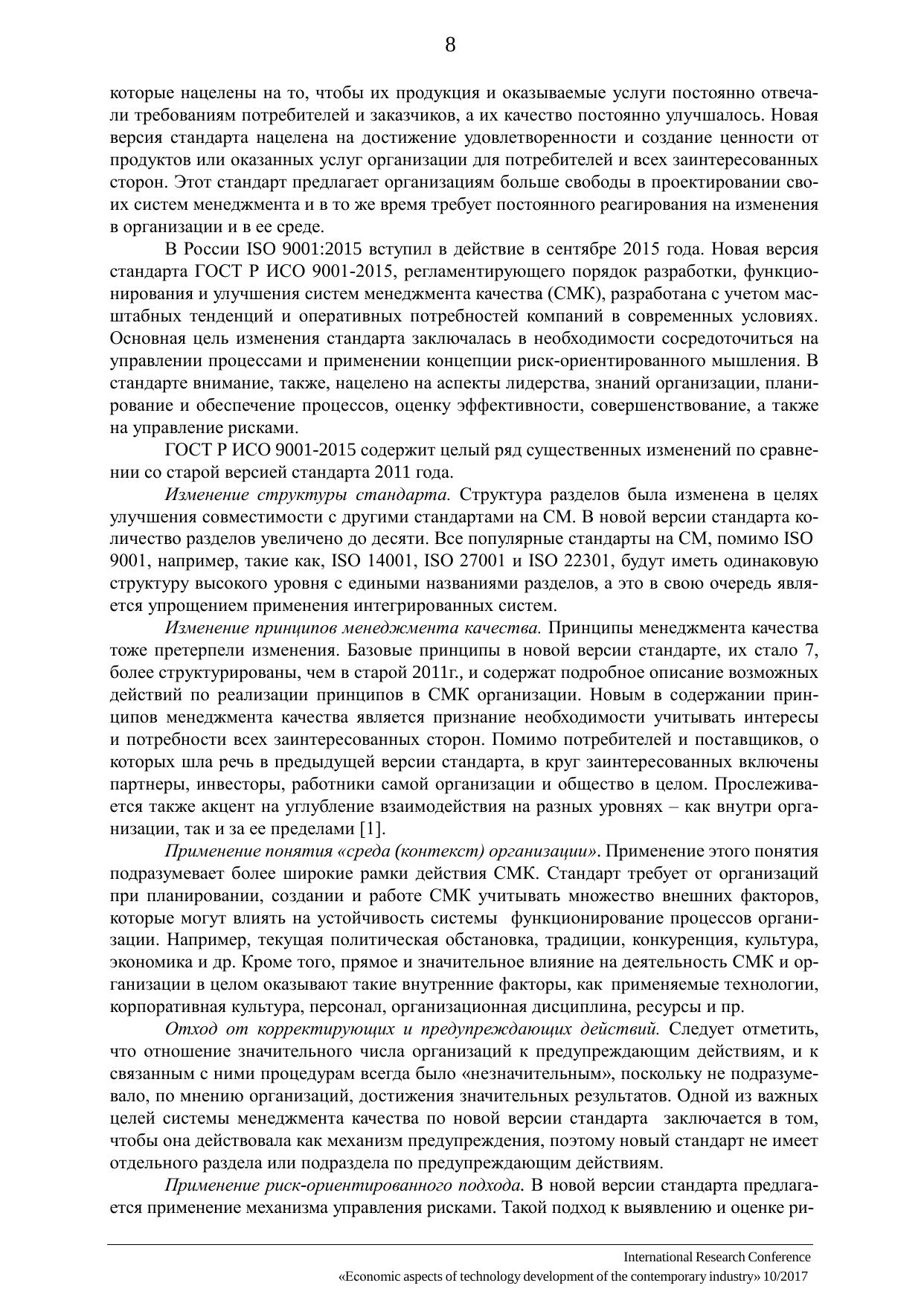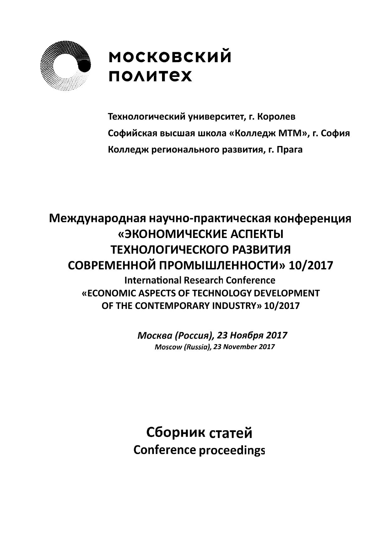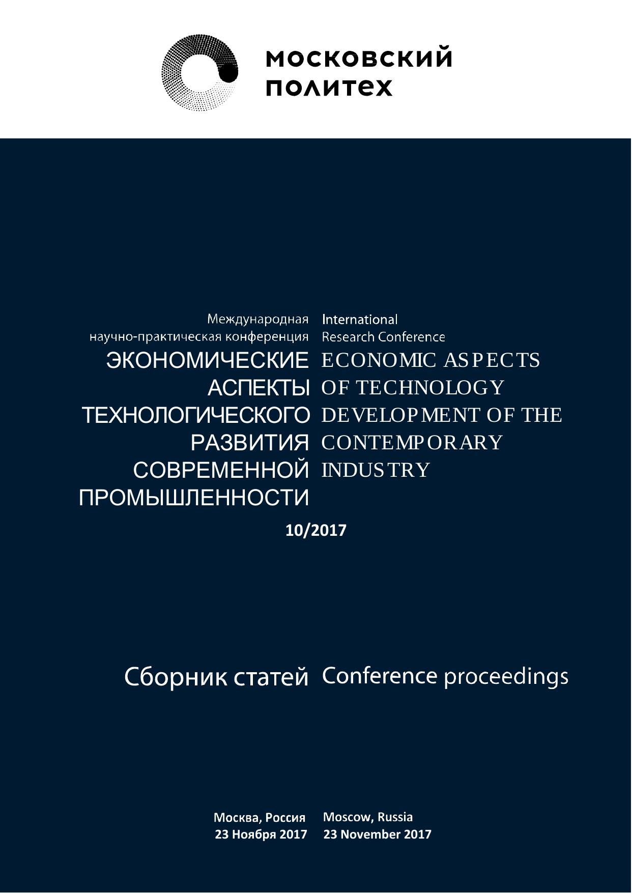 Экономические аспекты технологического развития современной промышленности 10/2017