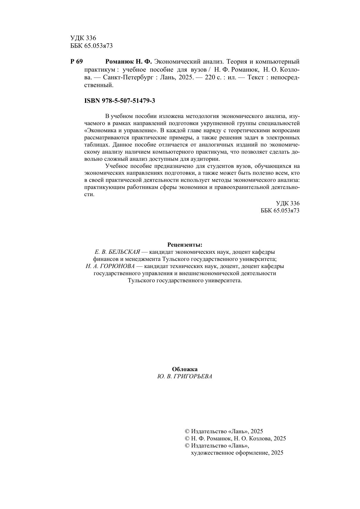 В учебном пособии изложена методология экономического анализа, изучаемого в рамках направлений подготовки укрупненной группы специальностей «Экономика и управление». В каждой главе наряду с теоретическими вопросами рассматриваются практические примеры, а также решения задач в электронных таблицах. Данное пособие отличается от аналогичных изданий по экономическому анализу наличием компьютерного практикума, что позволяет сделать довольно сложный анализ доступным для аудитории. Учебное пособие предназначено для студентов вузов, обучающихся на экономических направлениях подготовки, а также может быть полезно всем, кто в своей практической деятельности использует методы экономического анализа: практикующим работникам сферы экономики и правоохранительной деятельности.