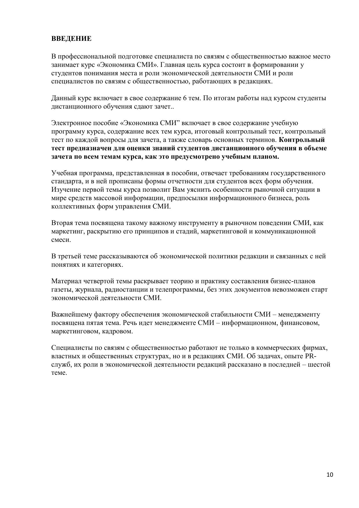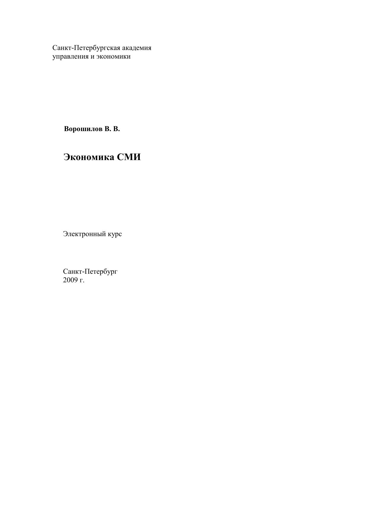 Электронное учебное пособие «Экономика СМИ» разработано в соответствии с учебной программой дисциплины «Экономика СМИ», включенной в блок общепрофессиональных дисциплин и занимающих одно из центральных мест в профессиональной подготовке специалистов в сфере связей с общественностью. Пособие предназначено для студентов, обучающихся по специальности 030600 – «Связи с общественностью». Электронное учебное пособие для дистанционного обучения