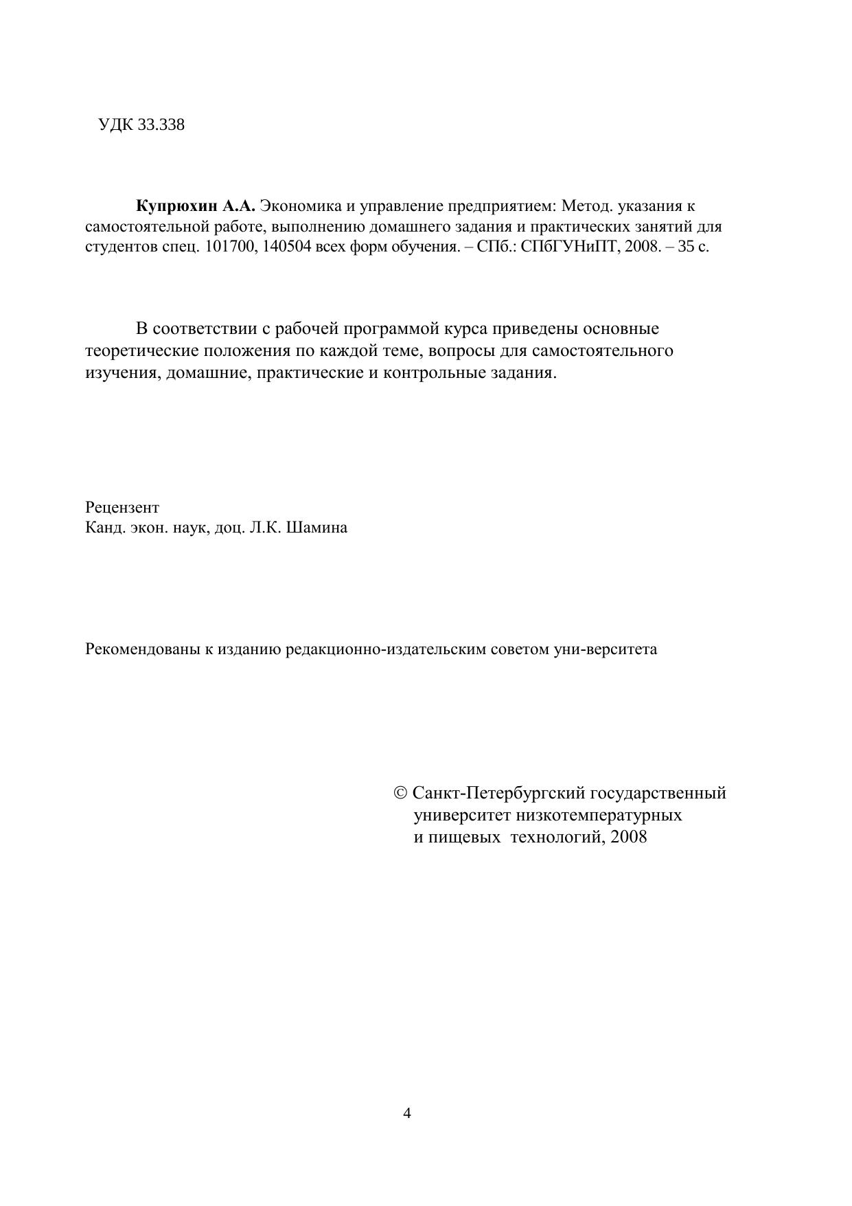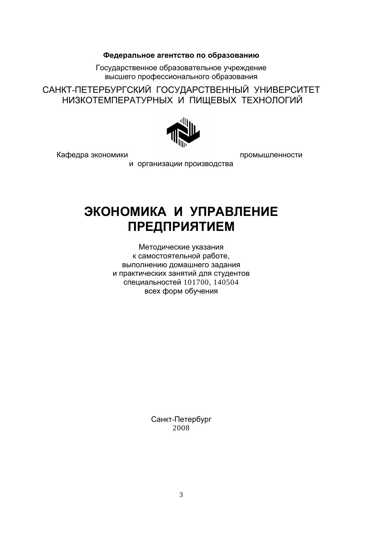 Экономика и управление предприятием: Методические указания к самостоятельной работе, выполнению домашнего задания и практических занятий для студентов спец. 101700, 140504 всех форм обучения
