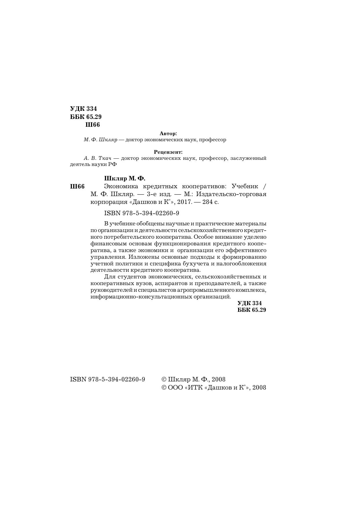 В учебнике обобщены научные и практические материалы по организации и деятельности сельскохозяйственного кредитного потребительского кооператива. Особое внимание уделено финансовым основам функционирования кредитного кооператива, а также экономики и организации его эффективного управления. Изложены основные подходы к формированию учетной политики и специфика бухучета и налогообложения деятельности кредитного кооператива. Для студентов экономических, сельскохозяйственных и кооперативных вузов, аспирантов и преподавателей, а также руководителей и специалистов агропромышленного комплекса, информационно-консультационных организаций.