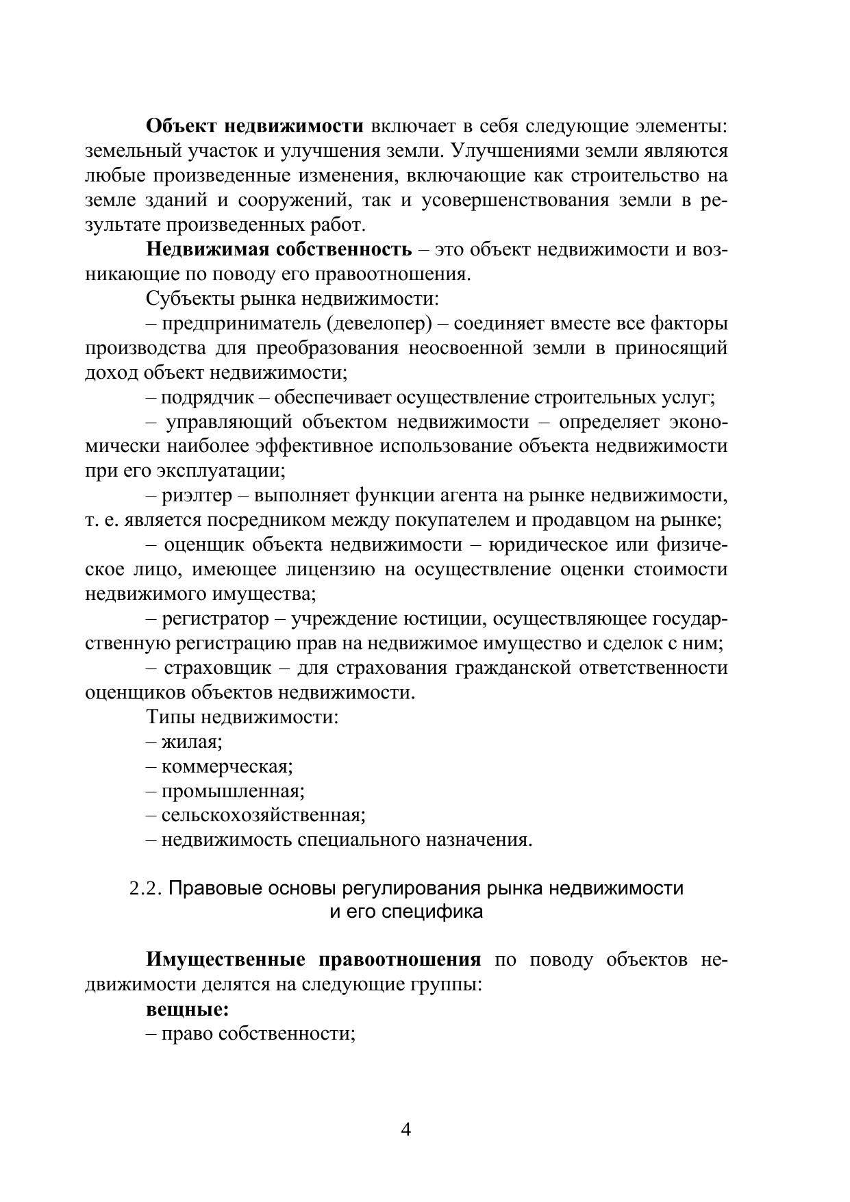 В соответствии с рабочей программой курса «Экономика недвижимости» изложено содержание основных понятий рынка недвижимости, рассмотрены подходы и методы оценки объектов недвижимости. Учебное пособие предназначено для студентов очной и заочной форм обучения направления подготовки 080200 Менеджмент.