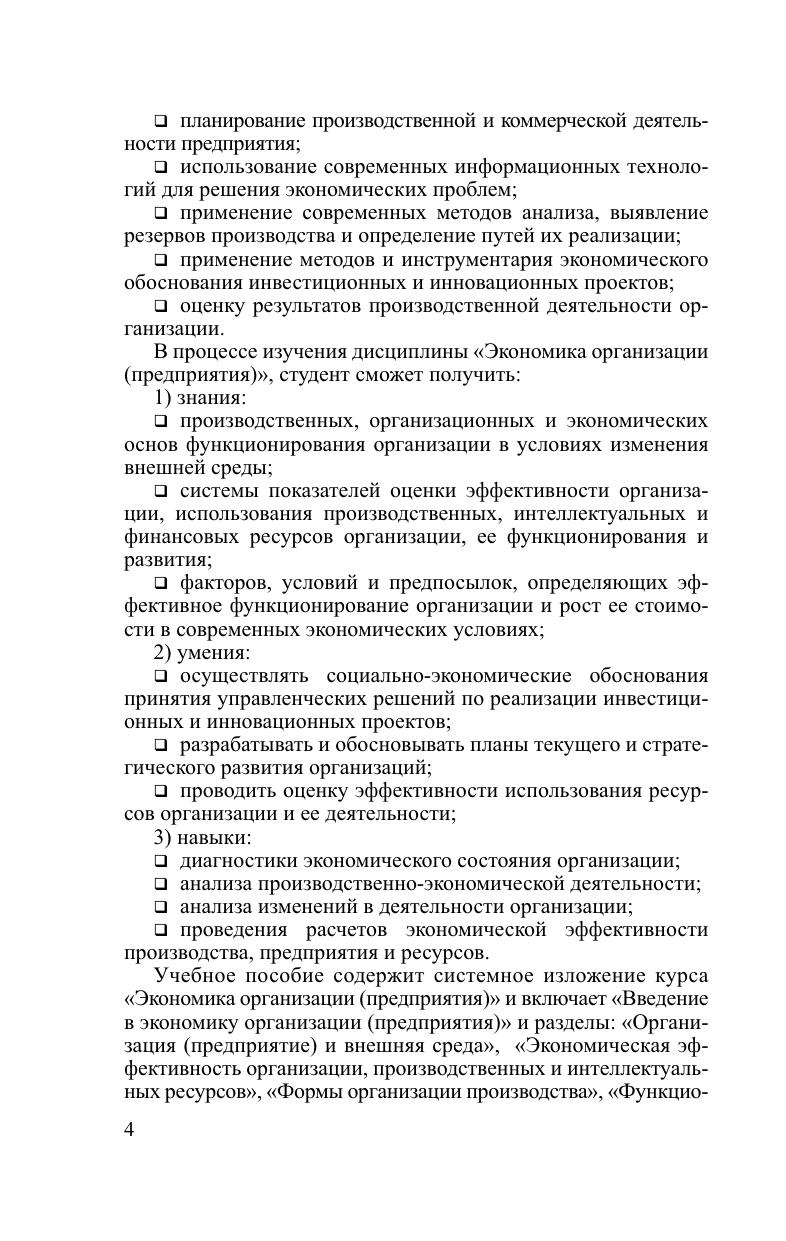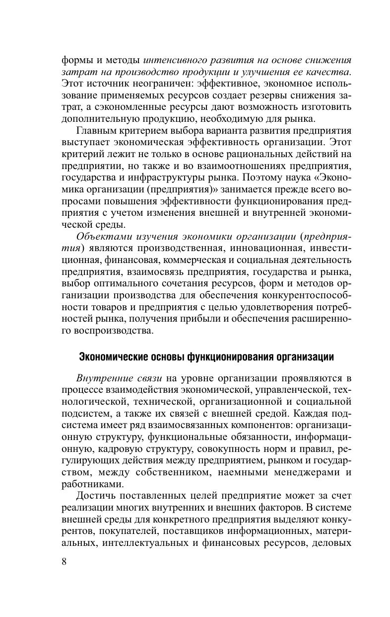 Раскрываются сущность и взаимодействие организации в системе национальной экономики, современные формы и методы развития организации. Рассматри ваются методы интегральной и комплексной оценки экономи ческой эффективности организации, производственных и интеллектуальных ресурсов. Представлен многогранный организационно-экономический механизм функционирования организации. Особое внимание уделяется оценке конкурентоспособности организации и товара, качества продукции, инновационной и инвестиционной деятельности, стоимости организации.