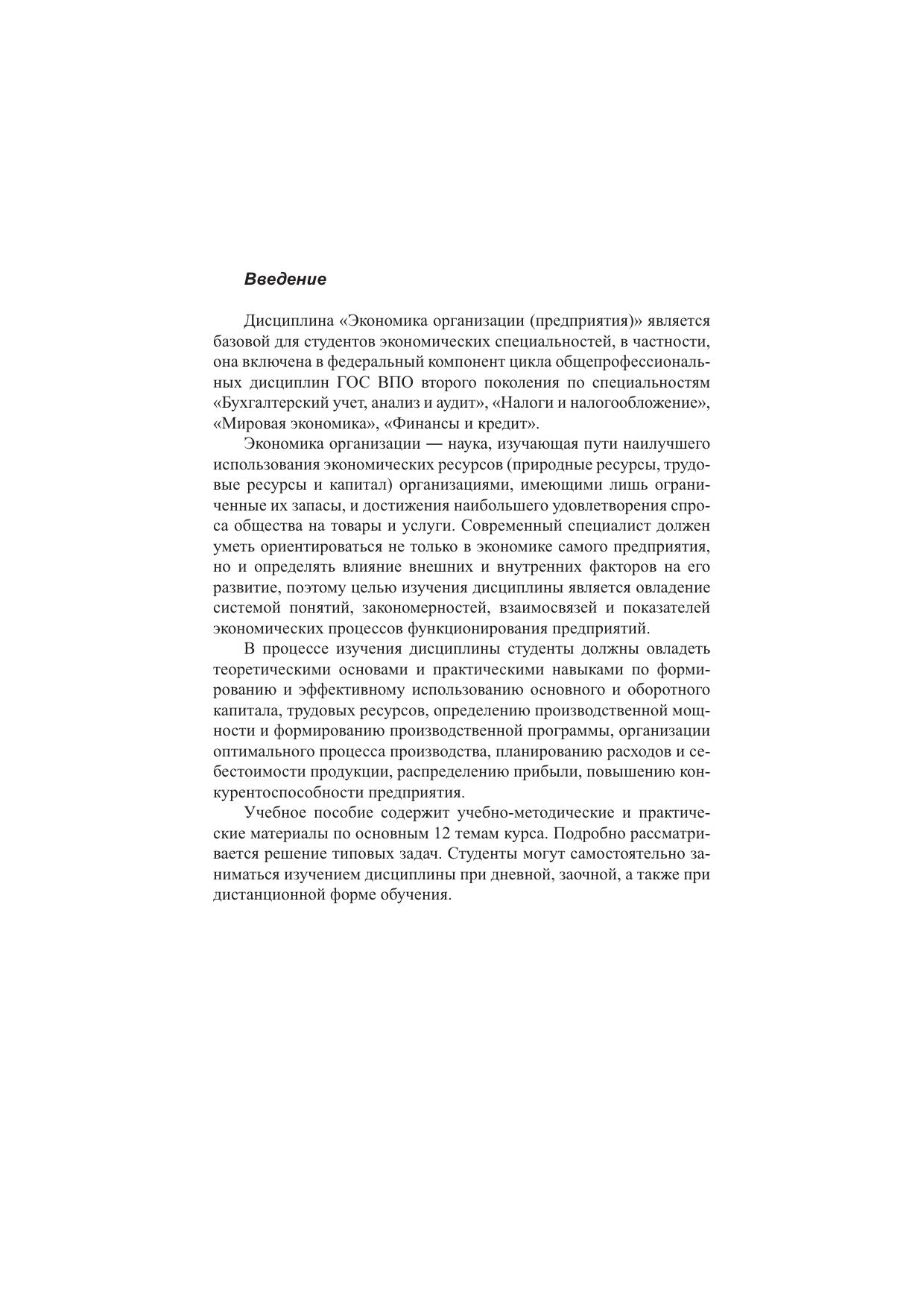 Учебное пособие подготовлено в соответствии с Государственным стандартом высшего профессионального образования. В пособии рассматриваются теоретические и методические вопросы экономики организации (предприятия), помогающие овладеть системой понятий, закономерностей и показателей экономических процессов. В конце каждой темы даны вопросы для повторения и самостоятельного изучения, практикум по решению типовых задач.
