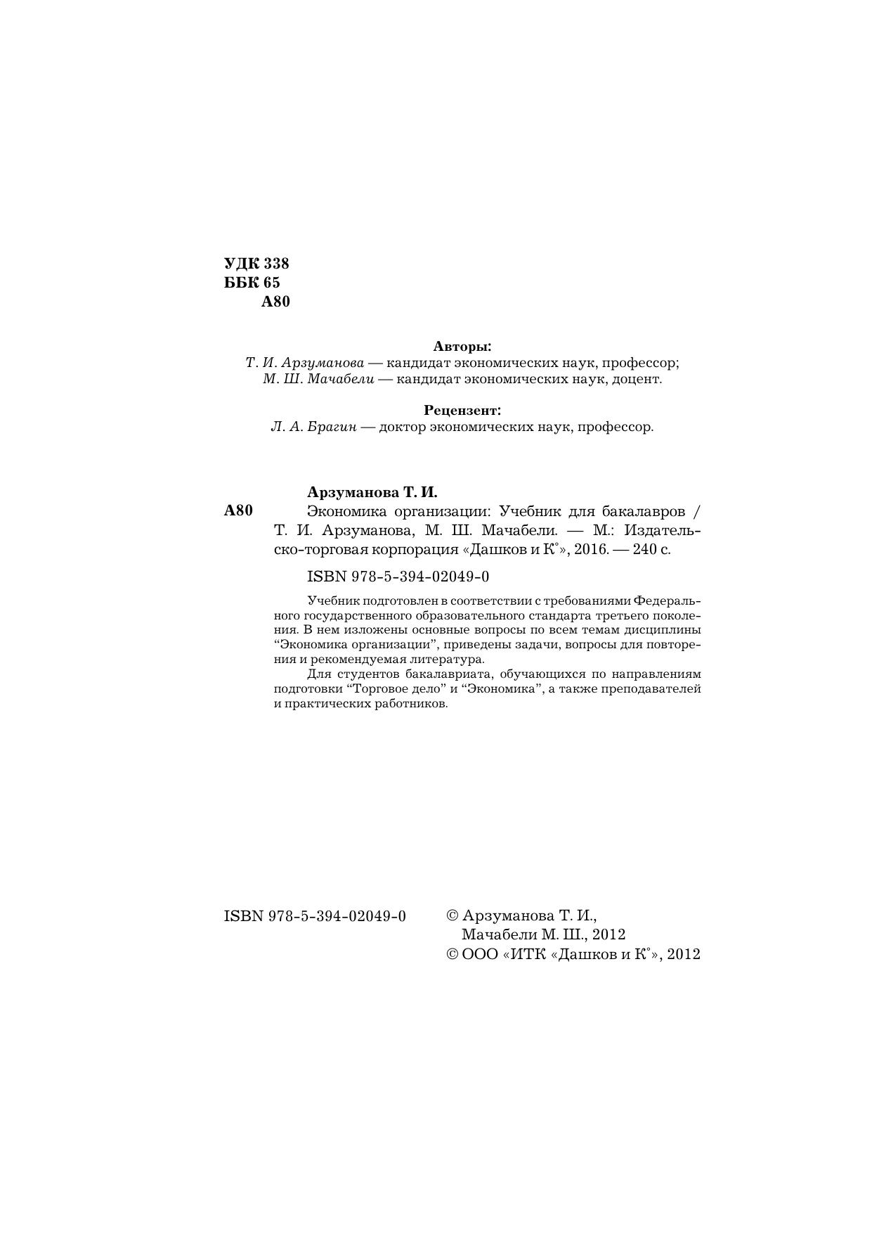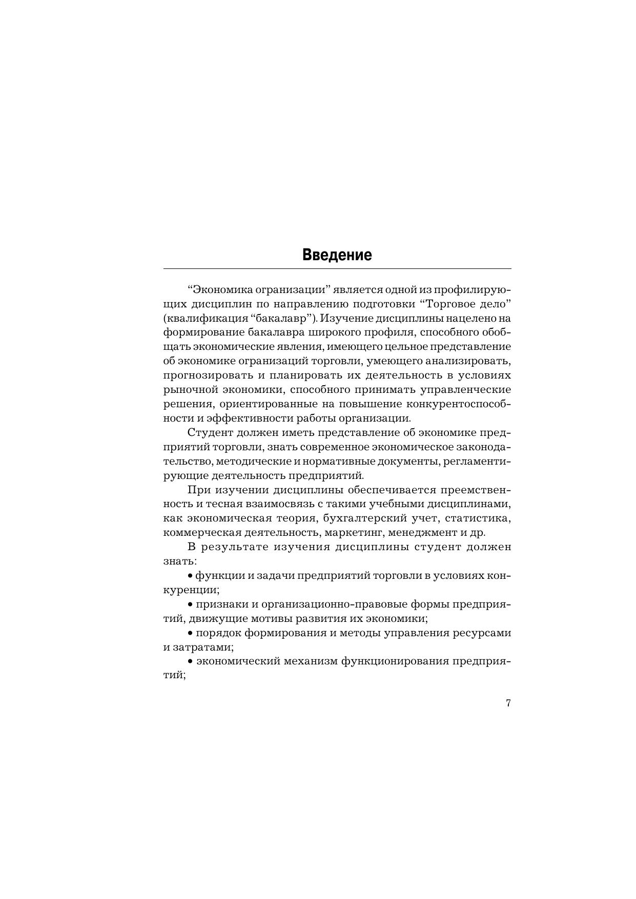 Учебник подготовлен в соответствии с требованиями Федерального государственного образовательного стандарта третьего поколения. В нем изложены основные вопросы по всем темам дисциплины “Экономика организации”, приведены задачи, вопросы для повторения и рекомендуемая литература. Для студентов бакалавриата, обучающихся по направлениям подготовки “Торговое дело” и “Экономика”, а также преподавателей и практических работников.