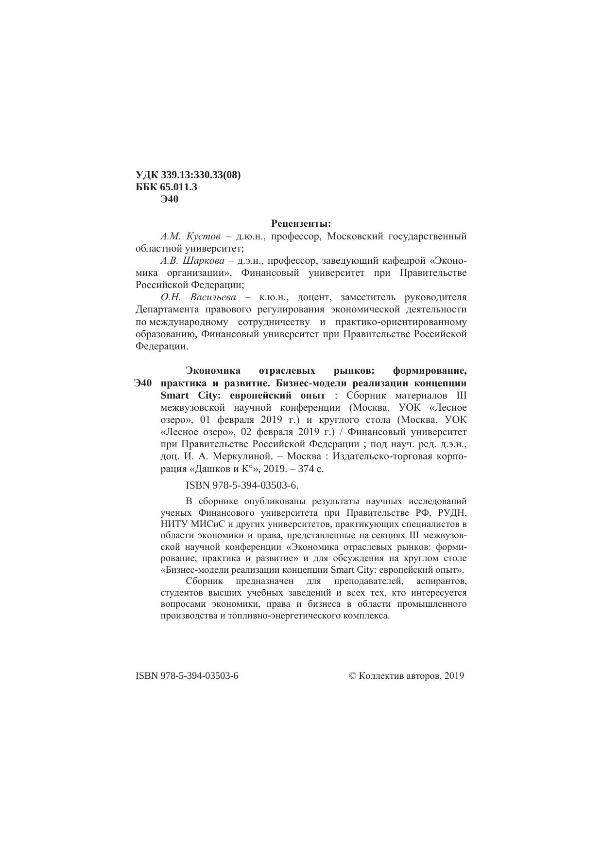Экономика отраслевых рынков: формирование, практика и развитие. Бизнес-модели реализации концепции Smart City: европейский опыт