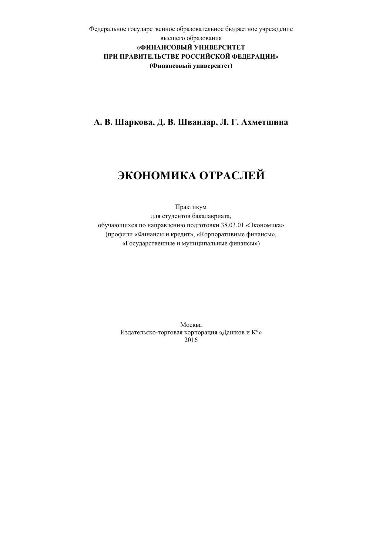 Экономика отраслей: Практикум для студентов бакалавриата, обучающихся по направлению подготовки 38.03.01 "Экономика"