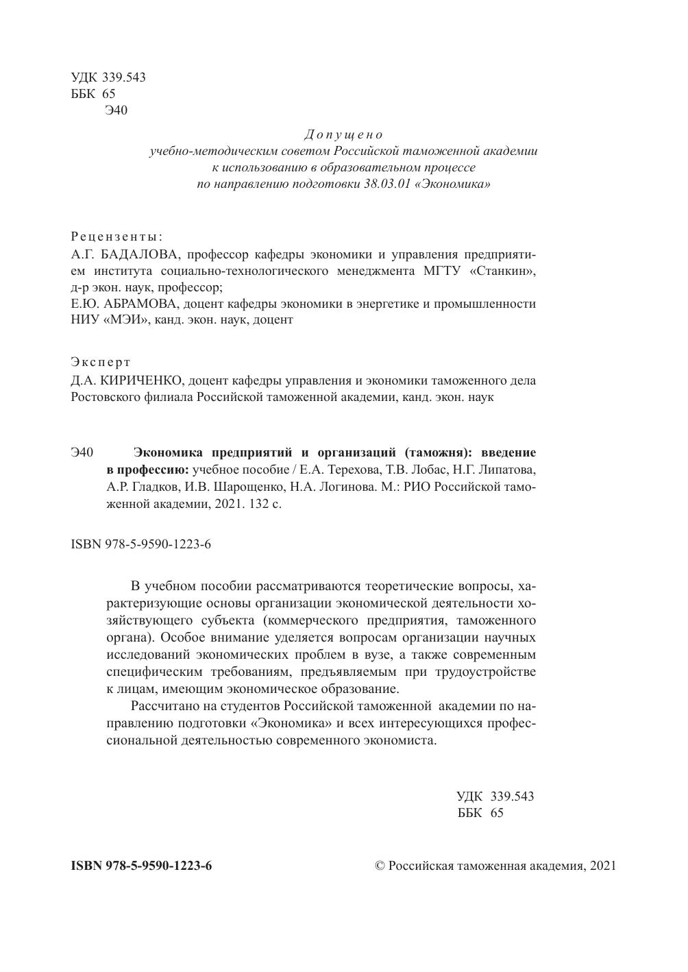 В учебном пособии рассматриваются теоретические вопросы, характеризующие основы организации экономической деятельности хозяйствующего субъекта (коммерческого предприятия, таможенного органа). Особое внимание уделяется вопросам организации научных исследований экономических проблем в вузе, а также современным специфическим требованиям, предъявляемым при трудоустройстве к лицам, имеющим экономическое образование.