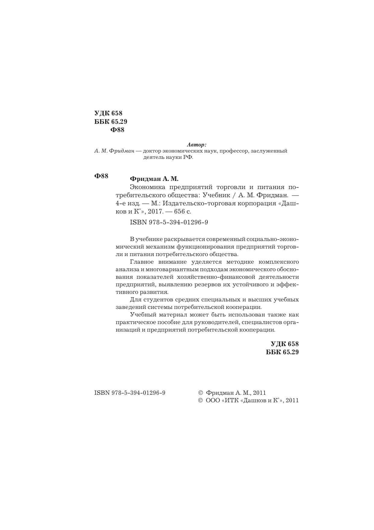 В учебнике раскрывается современный социально-экономический механизм функционирования предприятий торговли и питания потребительского общества. Главное внимание уделяется методике комплексного анализа и многовариантным подходам экономического обоснования показателей хозяйственно-финансовой деятельности предприятий, выявлению резервов их устойчивого и эффективного развития. Для студентов средних специальных и высших учебных заведений системы потребительской кооперации. Учебный материал может быть использован также как практическое пособие для руководителей, специалистов организаций и предприятий потребительской кооперации.