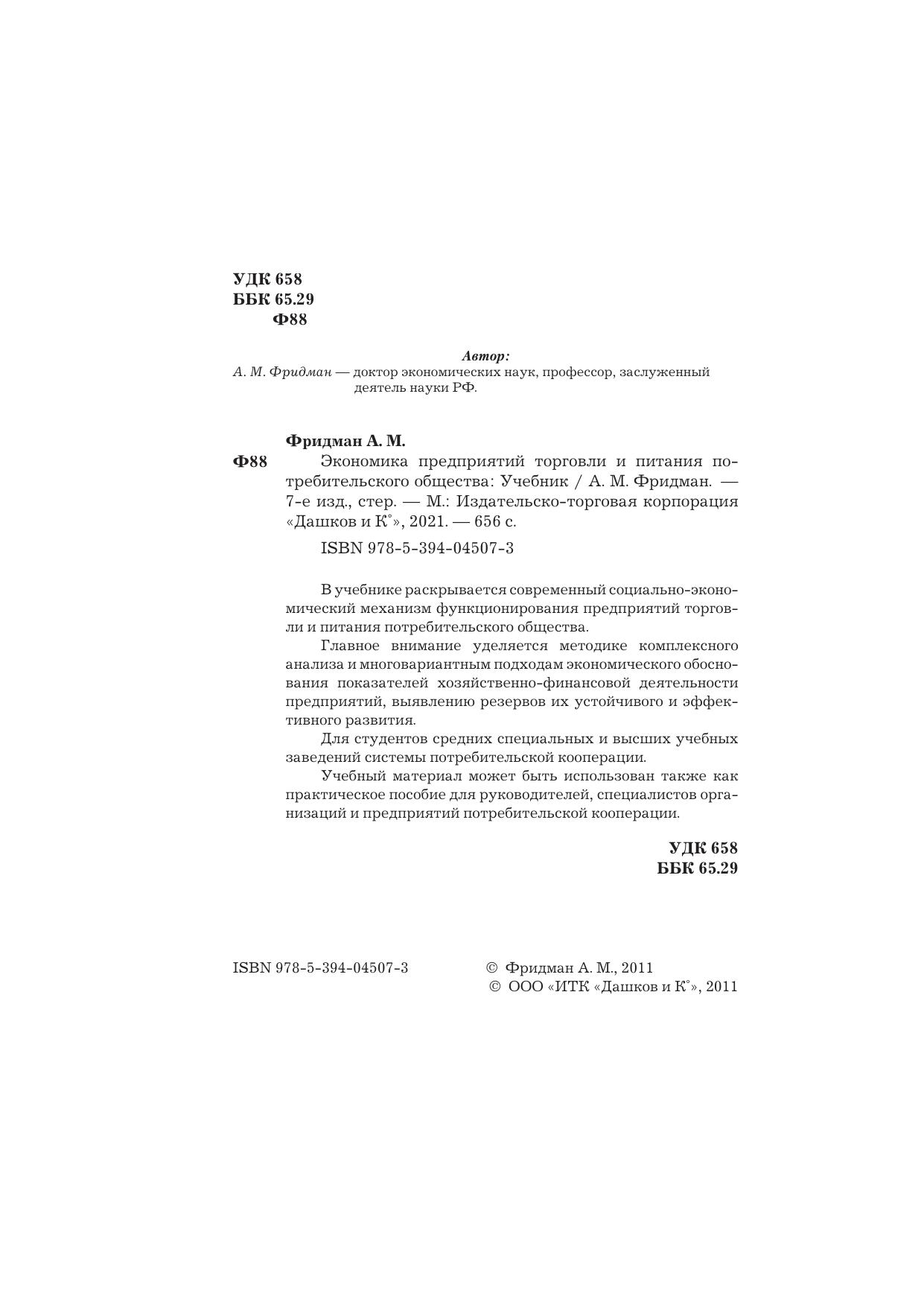 В учебнике раскрывается современный социально-экономический механизм функционирования предприятий торговли и питания потребительского общества. Главное внимание уделяется методике комплексного анализа и многовариантным подходам экономического обоснования показателей хозяйственно-финансовой деятельности предприятий, выявлению резервов их устойчивого и эффективного развития. Для студентов средних специальных и высших учебных заведений системы потребительской кооперации. Учебный материал может быть использован также как практическое пособие для руководителей, специалистов организаций и предприятий потребительской кооперации.