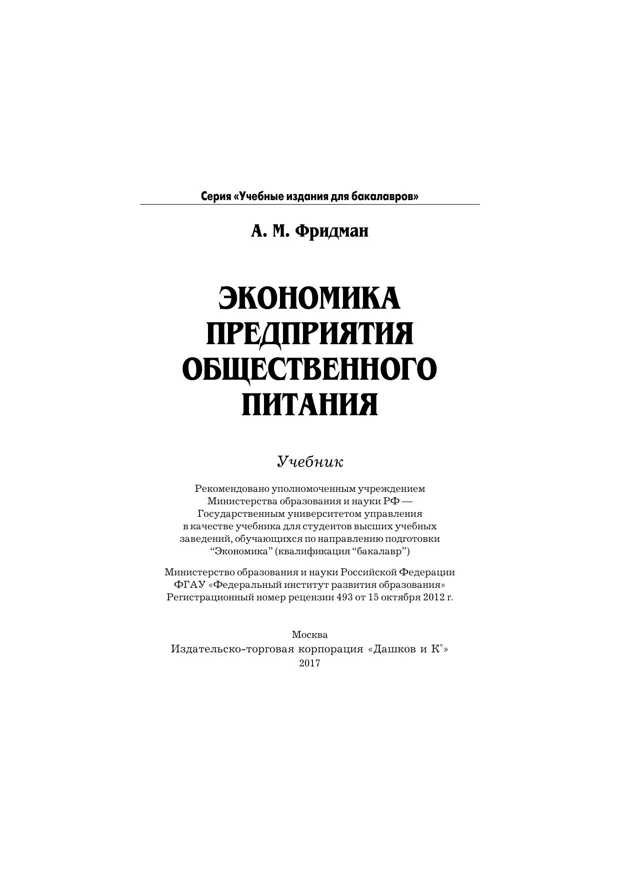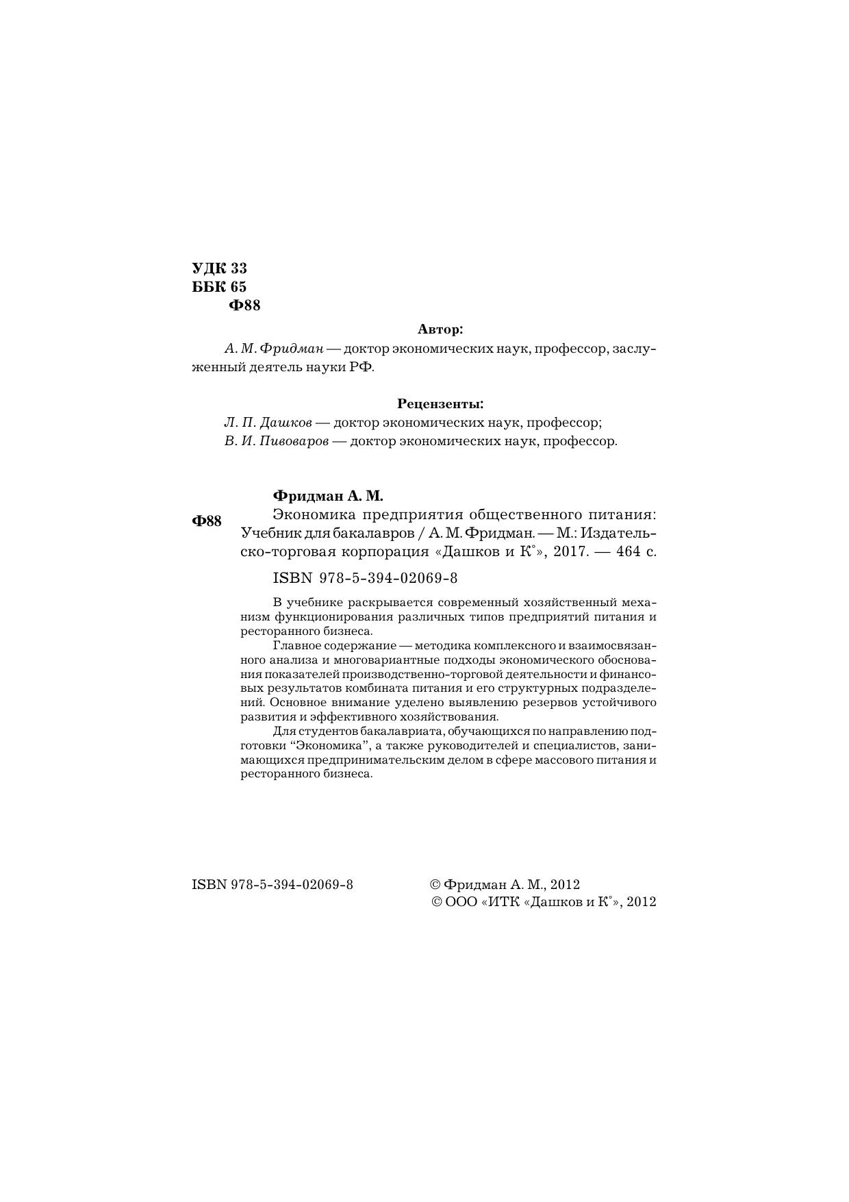 В учебнике раскрывается современный хозяйственный механизм функционирования различных типов предприятий питания и ресторанного бизнеса. Главное содержание — методика комплексного и взаимосвязанного анализа и многовариантные подходы экономического обоснования показателей производственно?торговой деятельности и финансовых результатов комбината питания и его структурных подразделений. Основное внимание уделено выявлению резервов устойчивого развития и эффективного хозяйствования. Для студентов бакалавриата, обучающихся по направлению подготовки “Экономика”, а также руководителей и специалистов, занимающихся предпринимательским делом в сфере массового питания и ресторанного бизнеса.