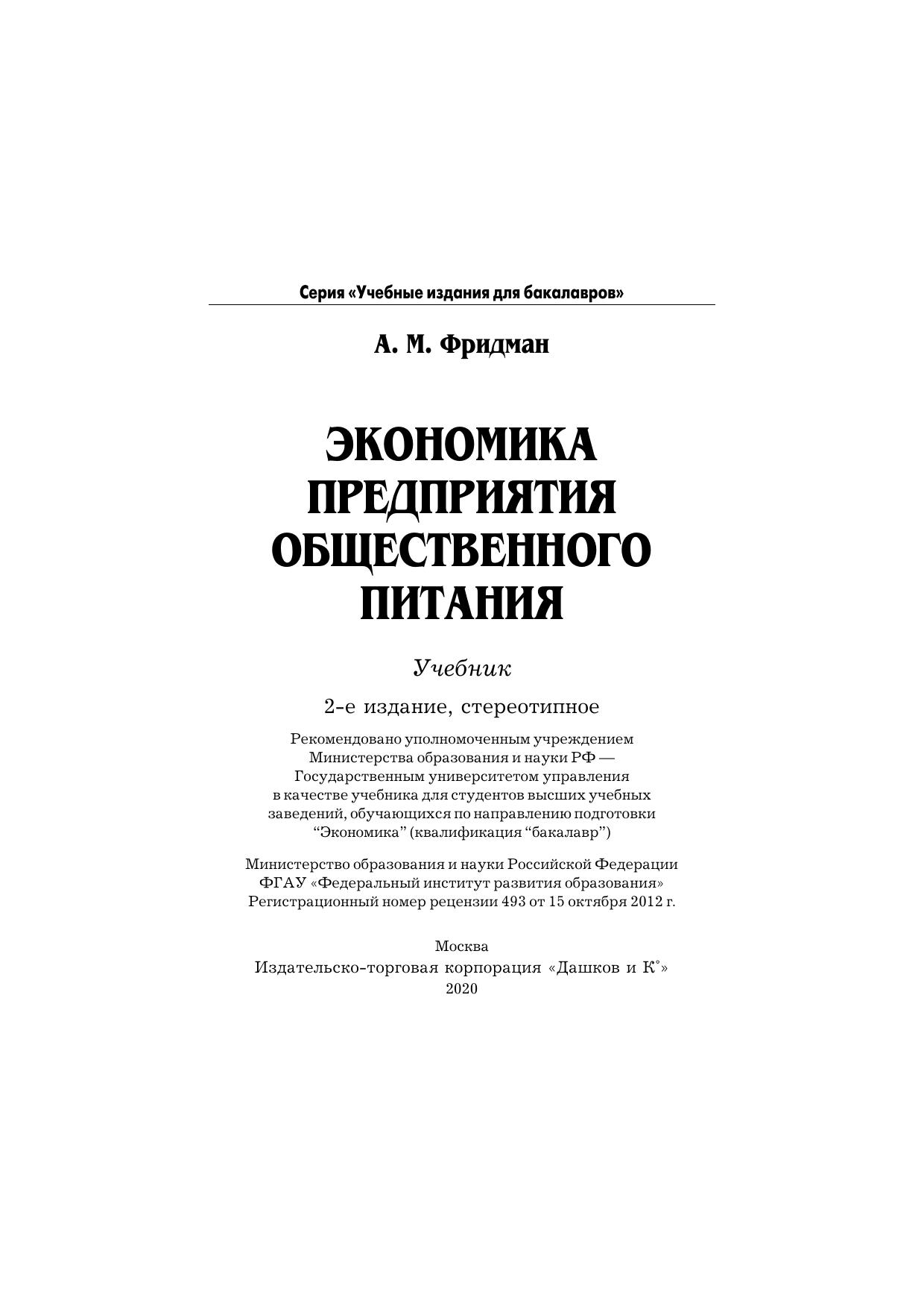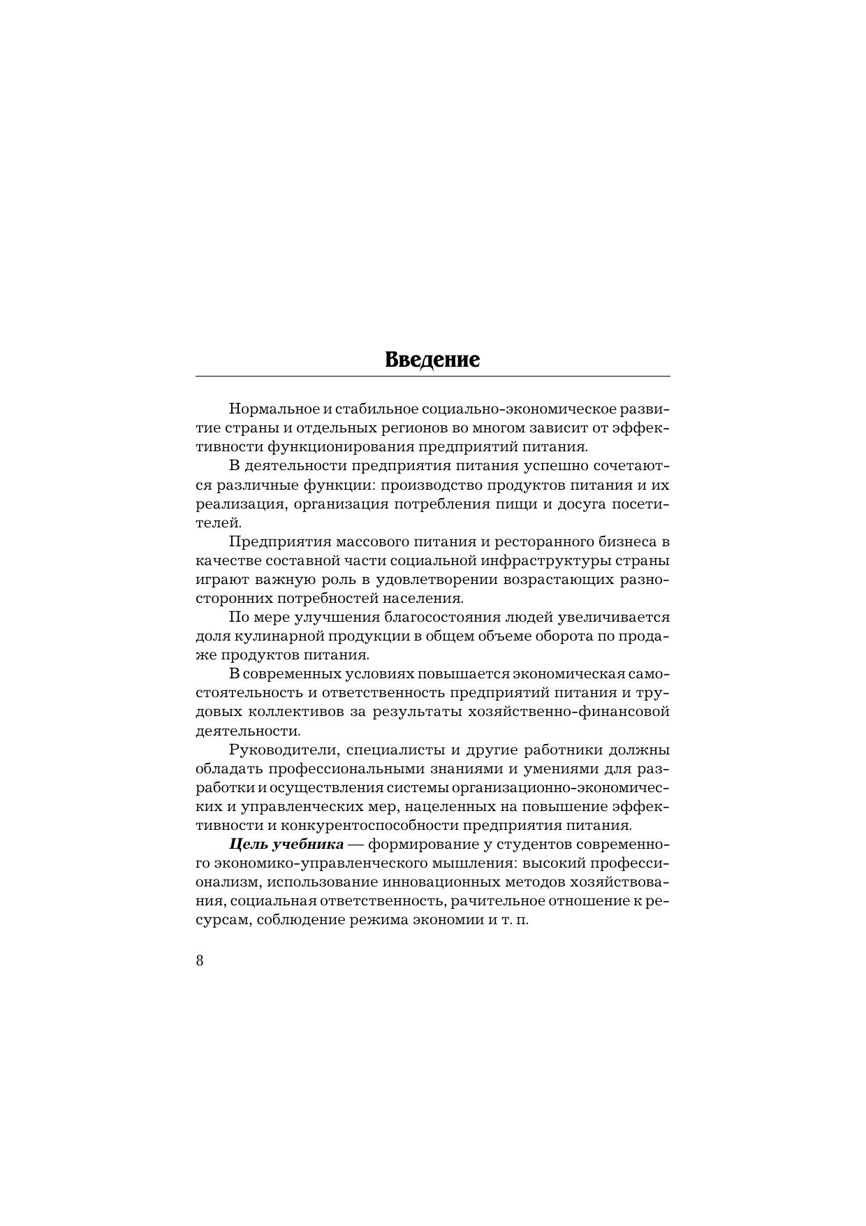 В учебнике раскрывается современный хозяйственный механизм функционирования различных типов предприятий питания и ресторанного бизнеса. Главное содержание — методика комплексного и взаимосвязанного анализа и многовариантные подходы экономического обоснования показателей производственно?торговой деятельности и финансовых результатов комбината питания и его структурных подразделений. Основное внимание уделено выявлению резервов устойчивого развития и эффективного хозяйствования. Для студентов бакалавриата, обучающихся по направлению подготовки “Экономика”, а также руководителей и специалистов, занимающихся предпринимательским делом в сфере массового питания и ресторанного бизнеса.