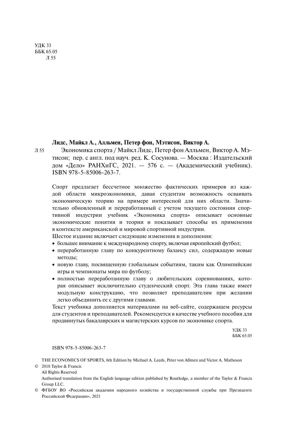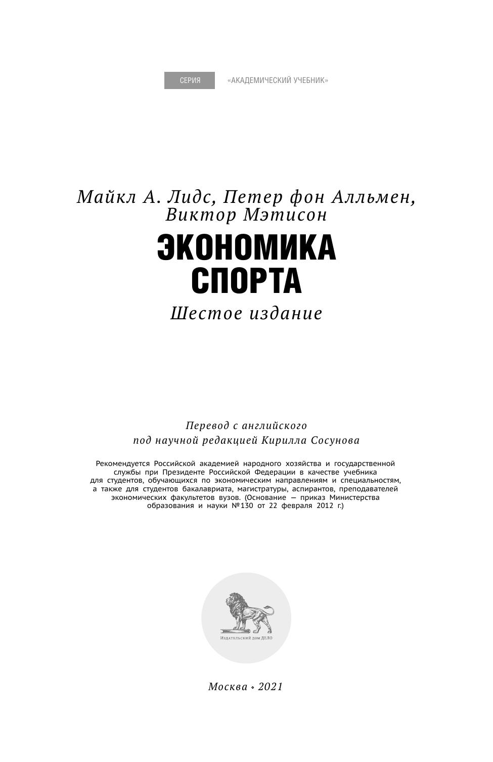 Текст учебника дополняется материалами на веб-сайте, содержащем ресурсы для студентов и преподавателей. Рекомендуется в качестве учебного пособия для продвинутых бакалаврских и магистерских курсов по экономике спорта.